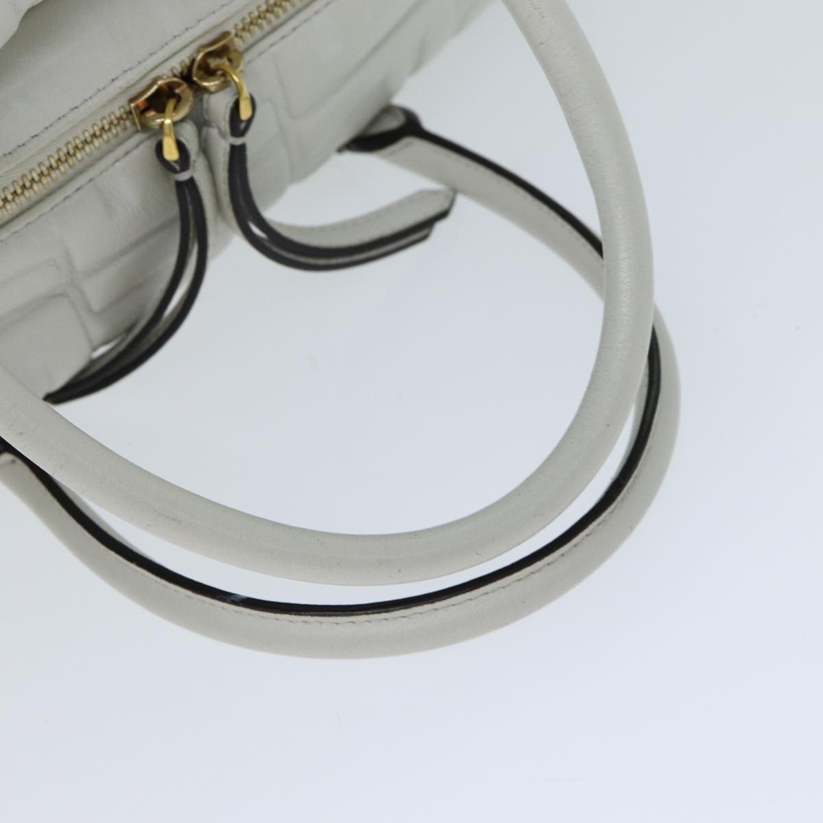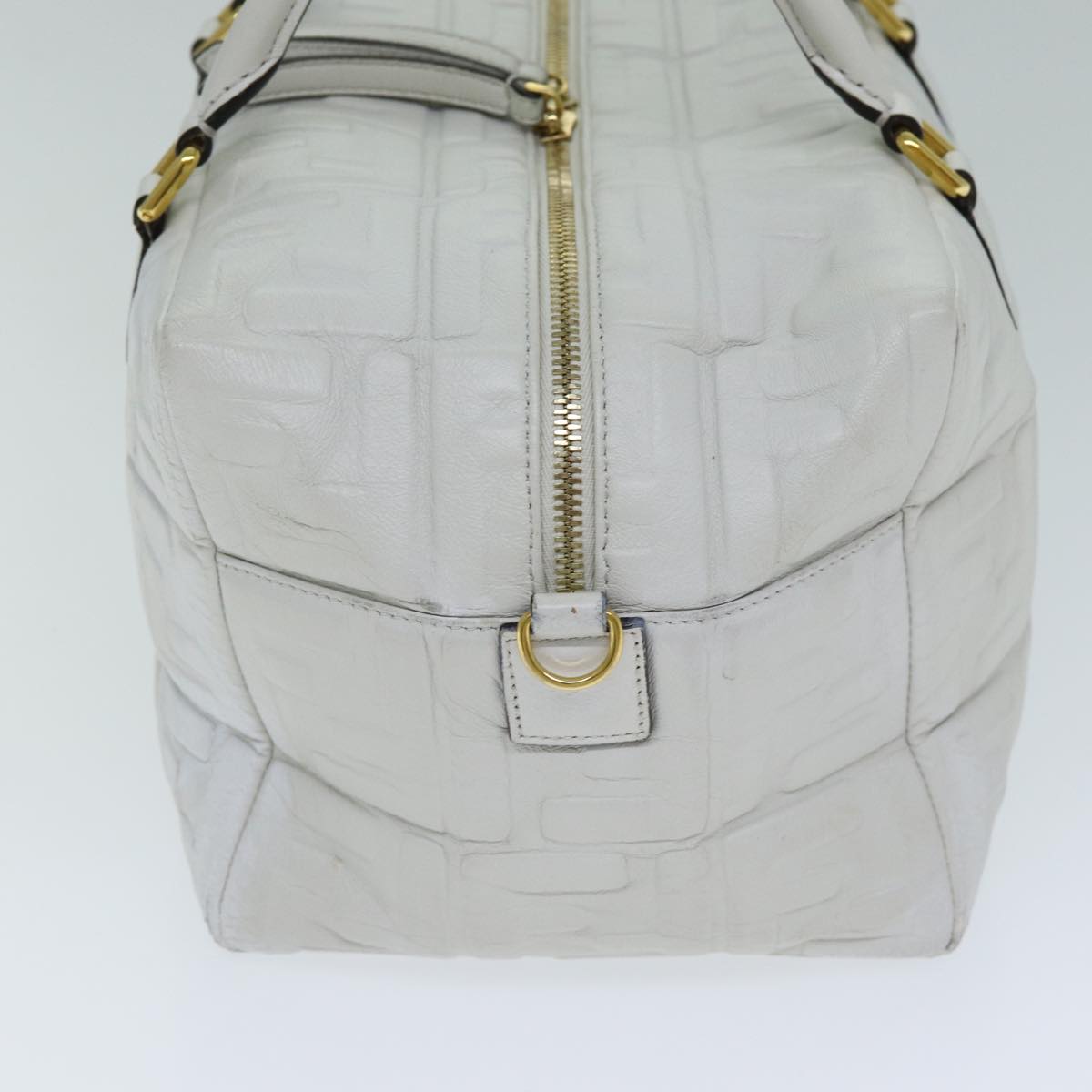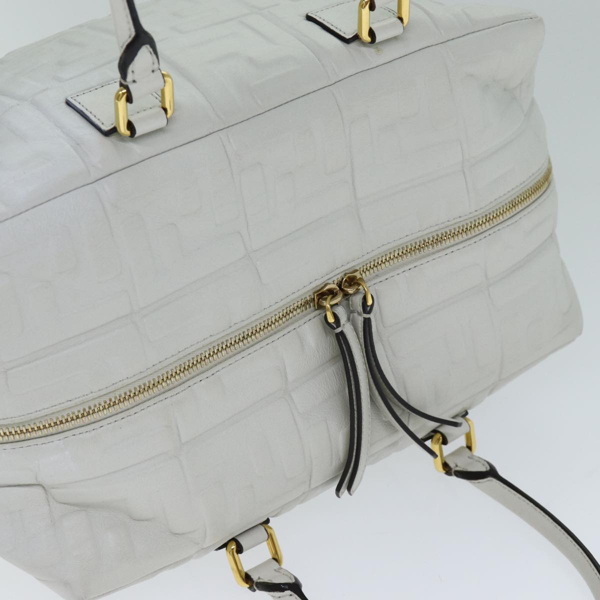 FENDI Zucca Canvas Hand Bag Leather 2way White Auth bs15482