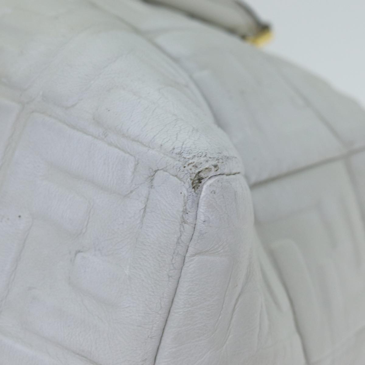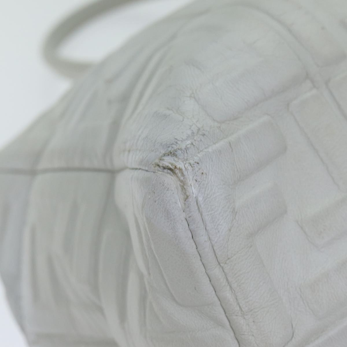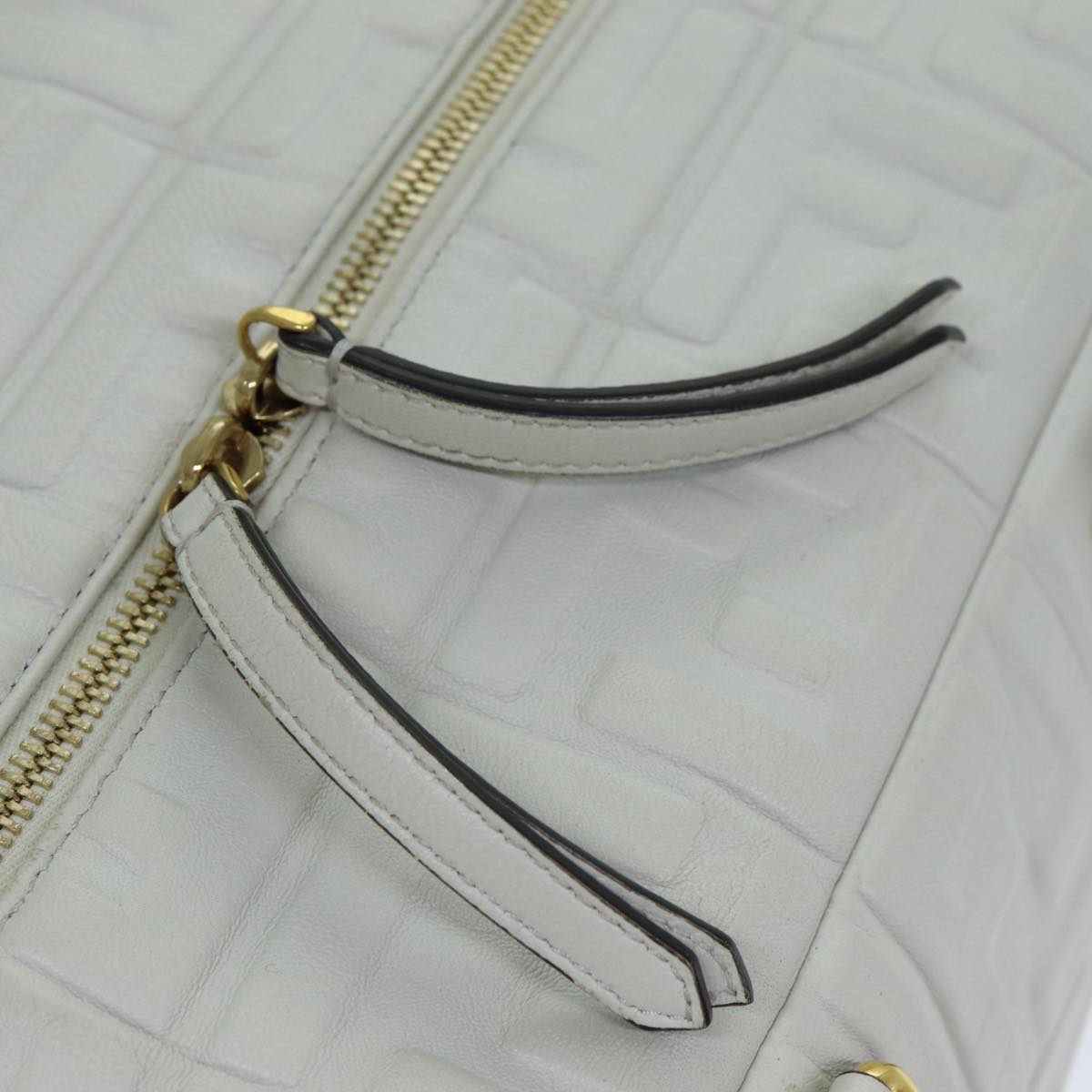 FENDI Zucca Canvas Hand Bag Leather 2way White Auth bs15482