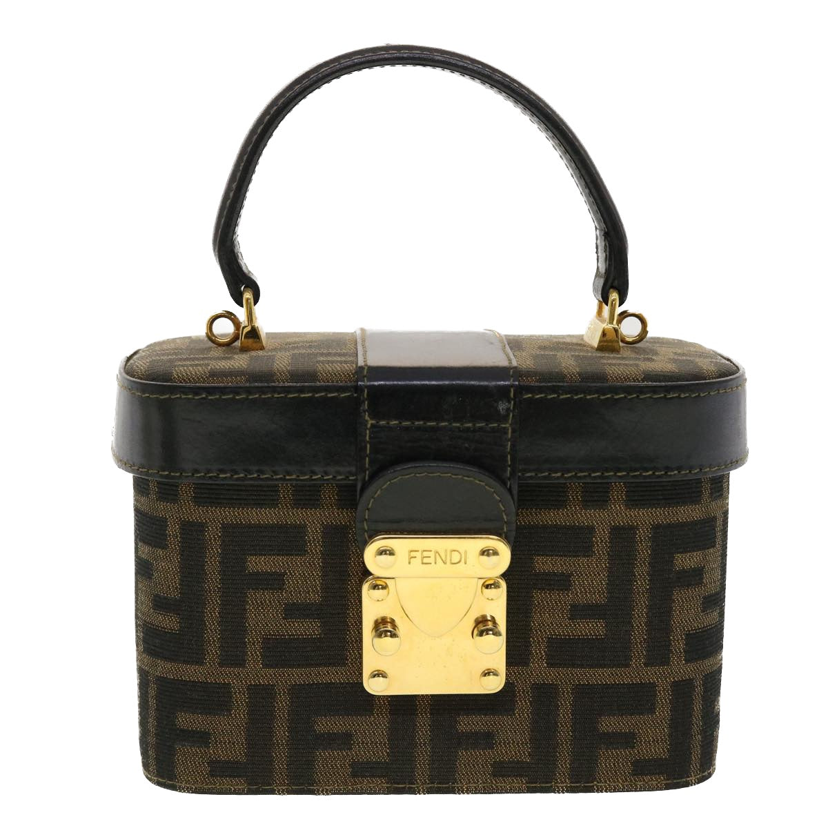 FENDI Zucca Canvas Hand Bag Nylon 2way Brown Black Auth am4252A