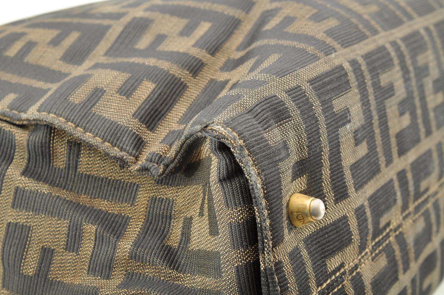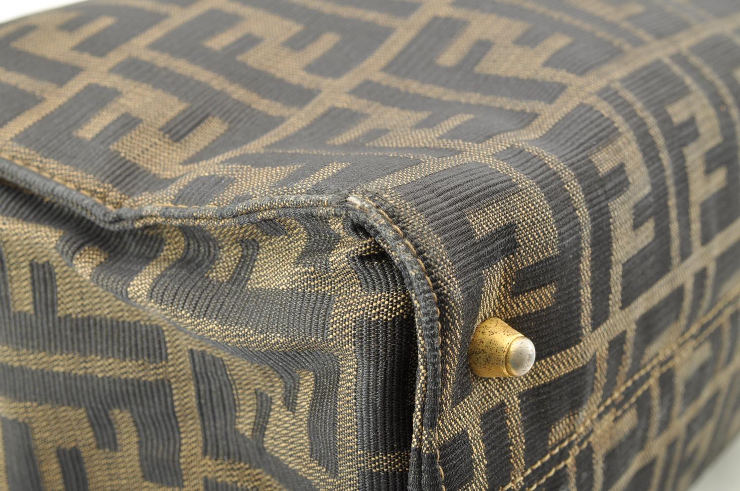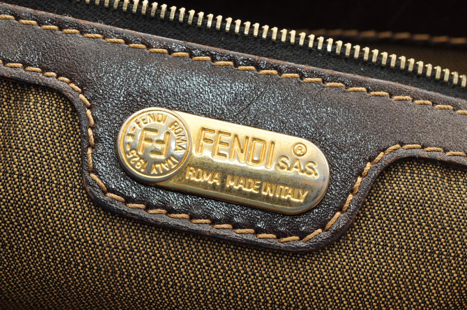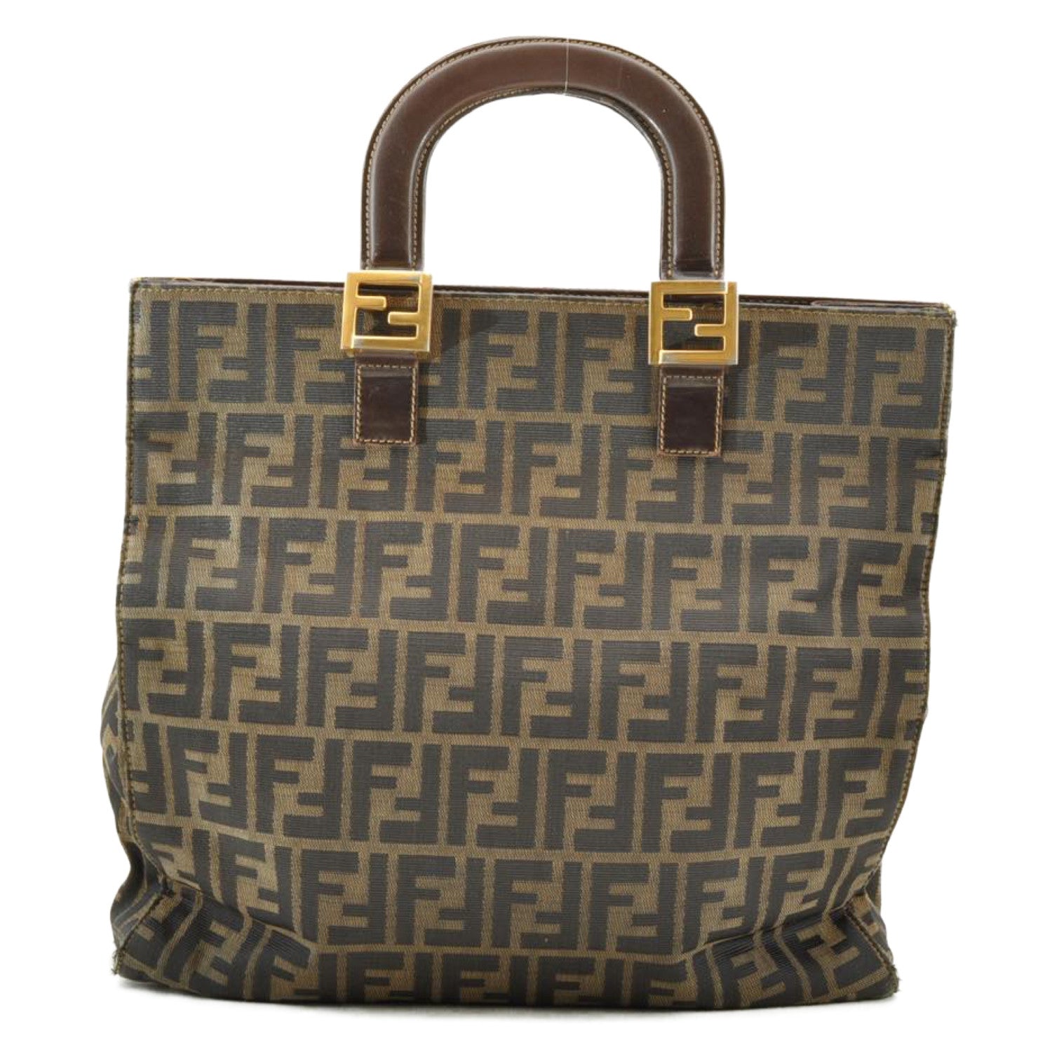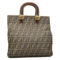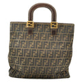 FENDI Zucca Canvas Hand Bag Nylon Black Brown Auth am1722s