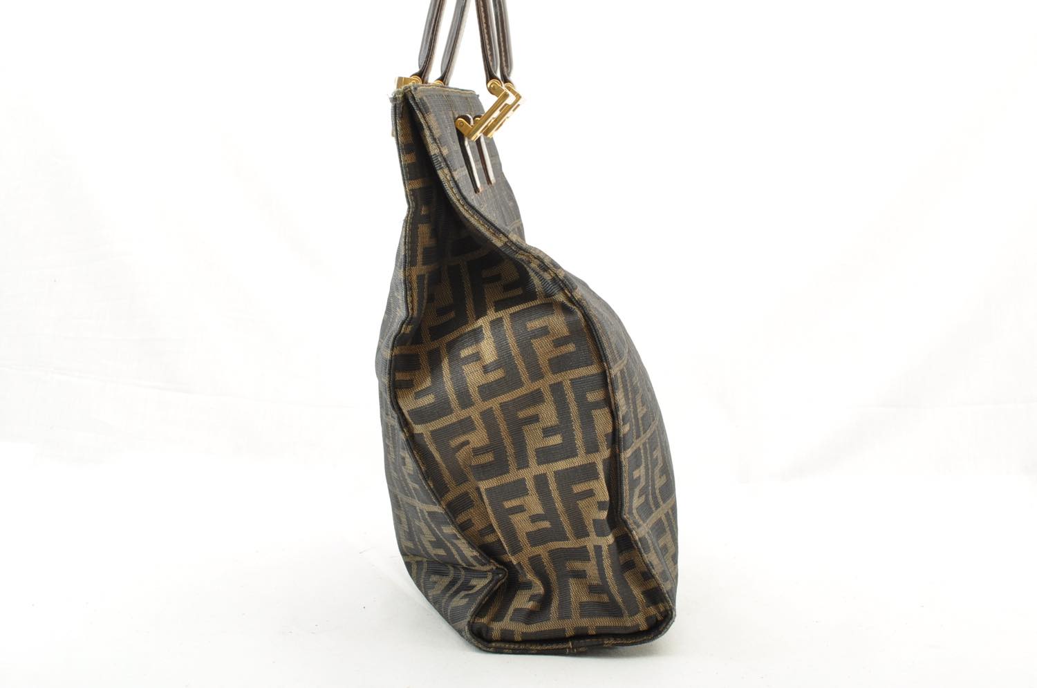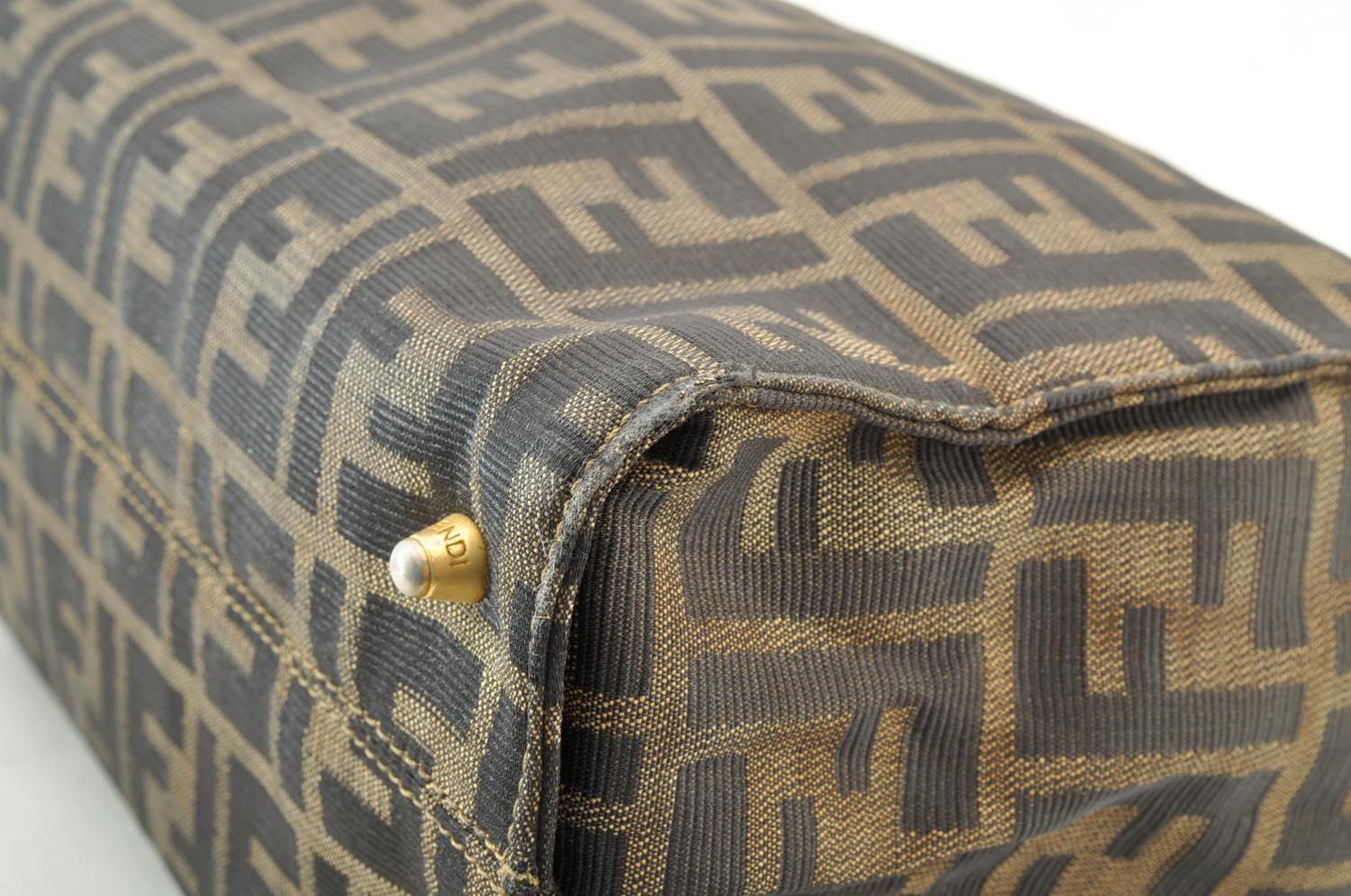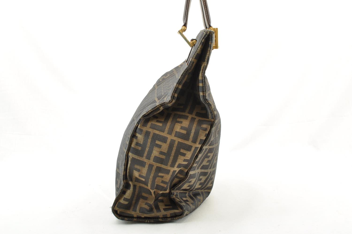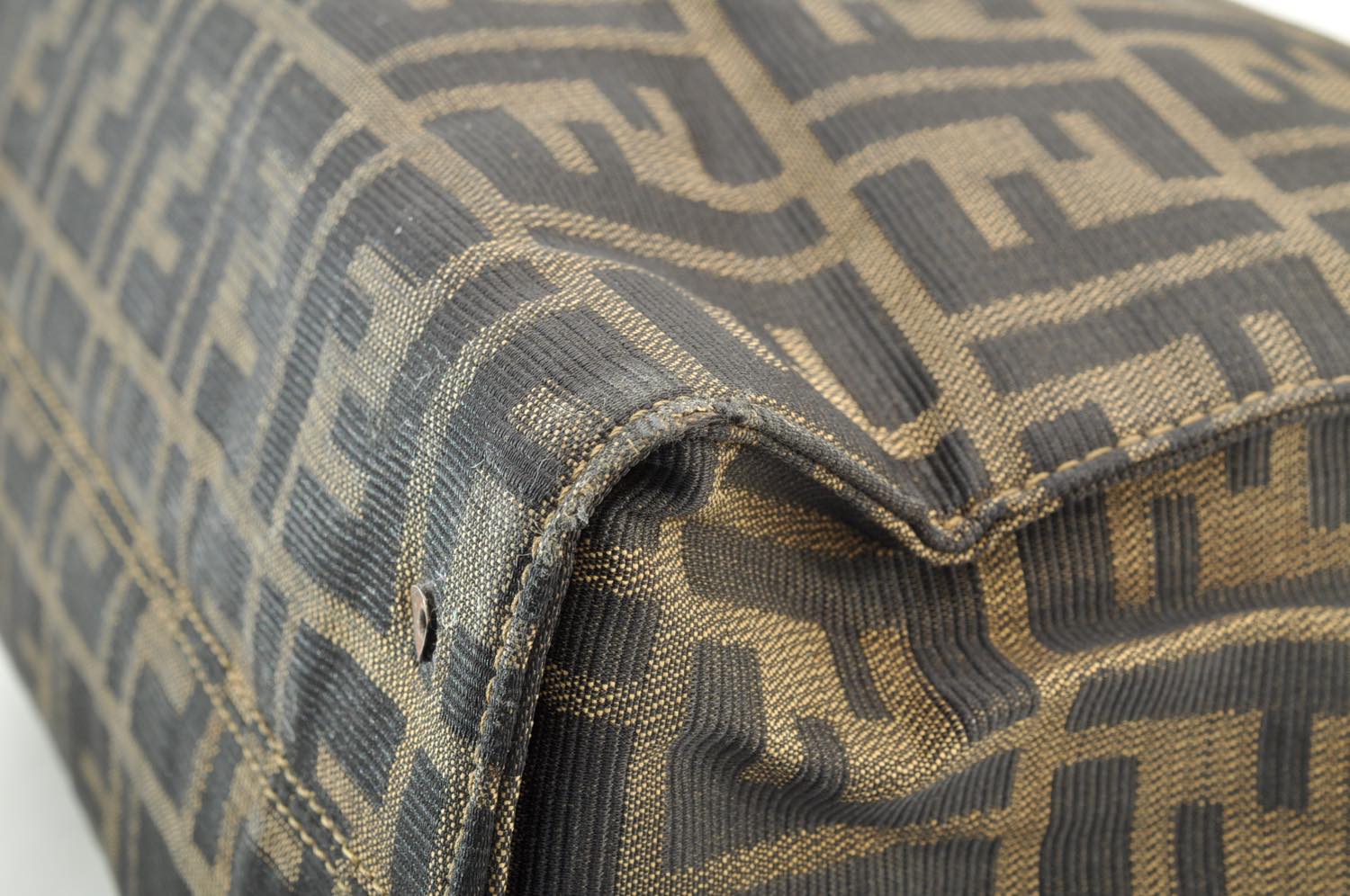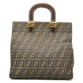FENDI Zucca Canvas Hand Bag Nylon Black Brown Auth am1722s