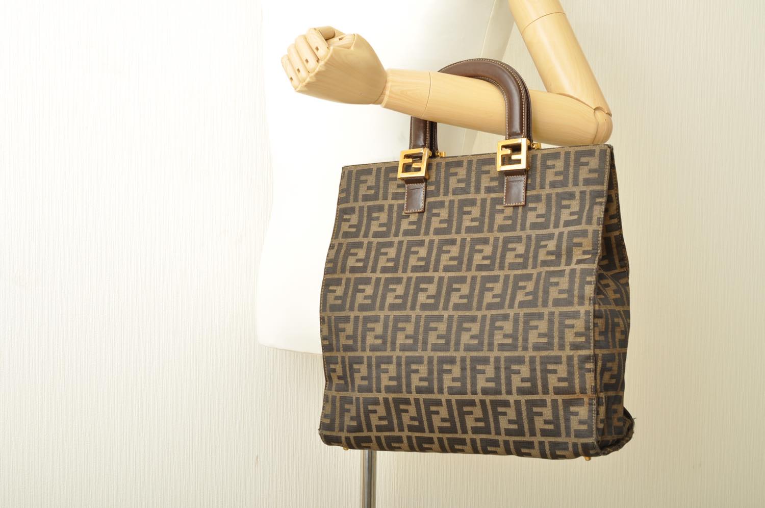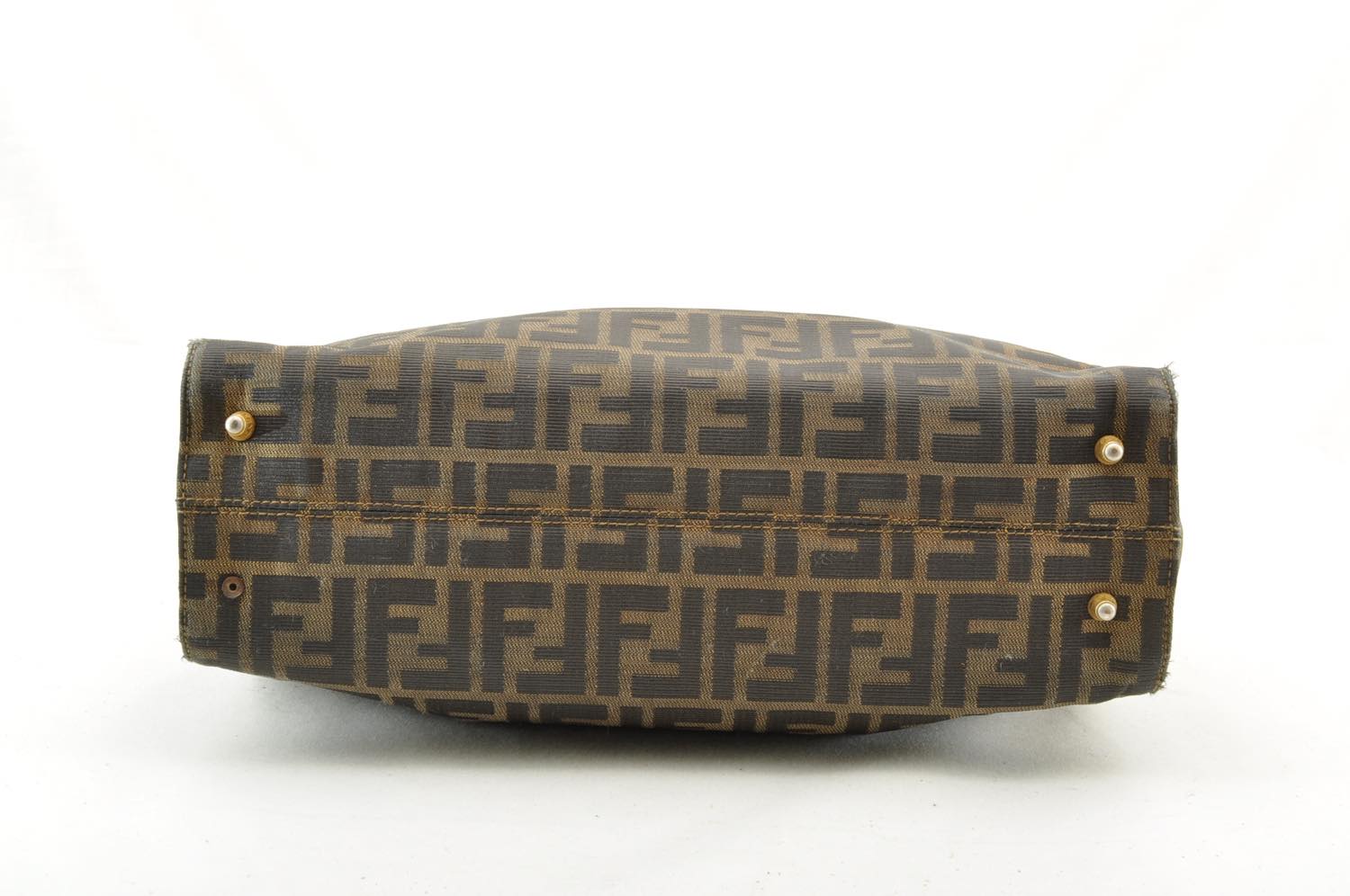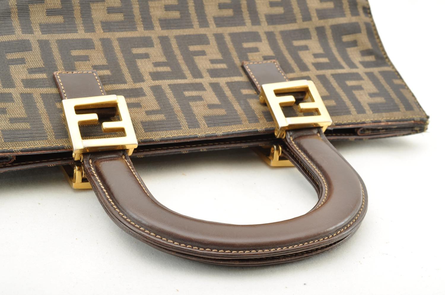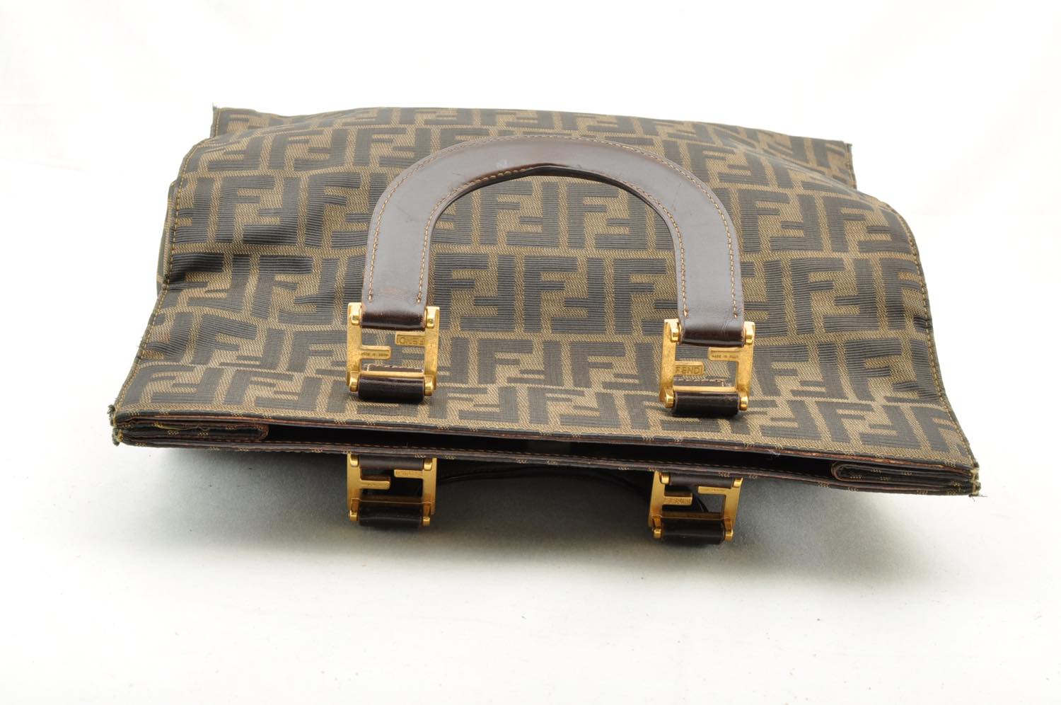 FENDI Zucca Canvas Hand Bag Nylon Black Brown Auth am1722s