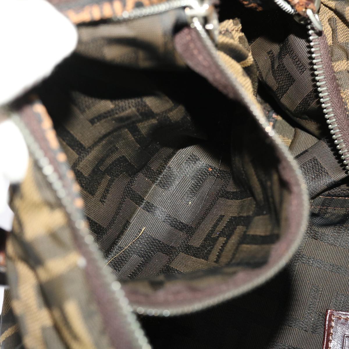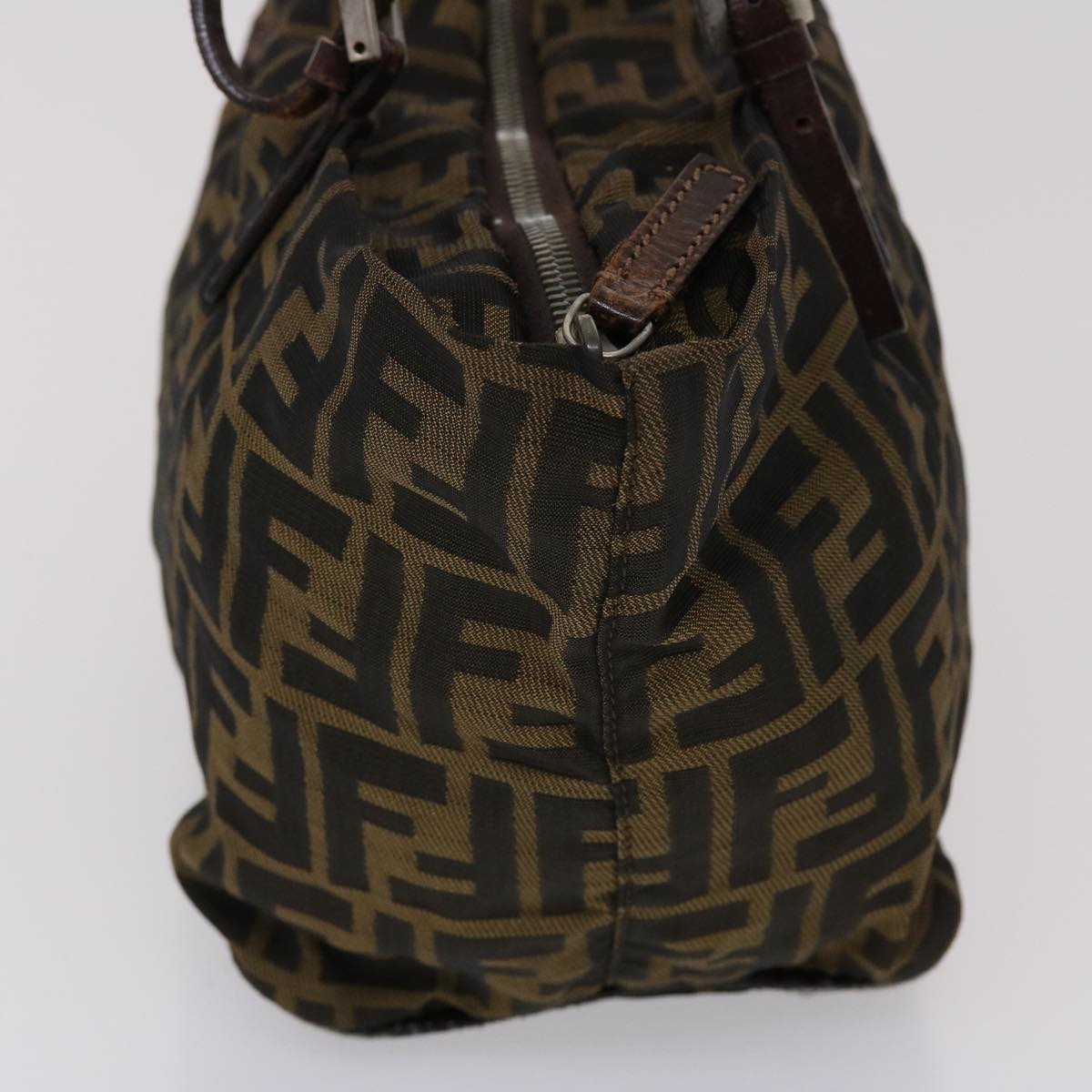 FENDI Zucca Canvas Hand Bag Nylon Brown Black Auth 45877