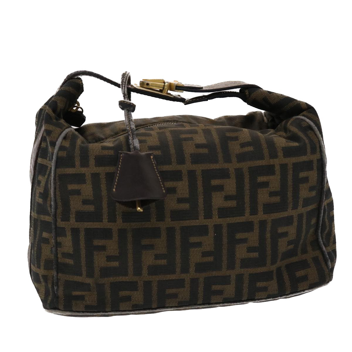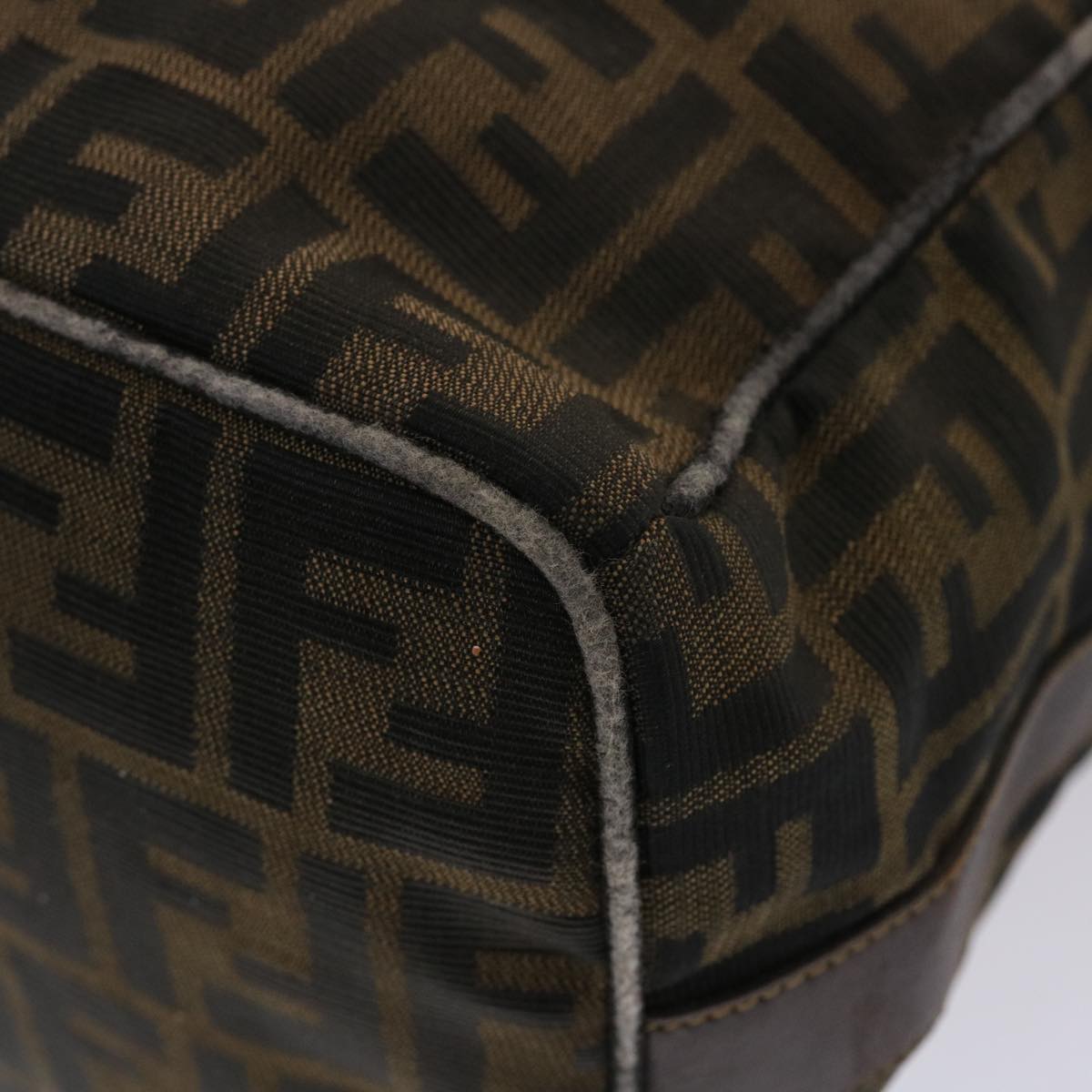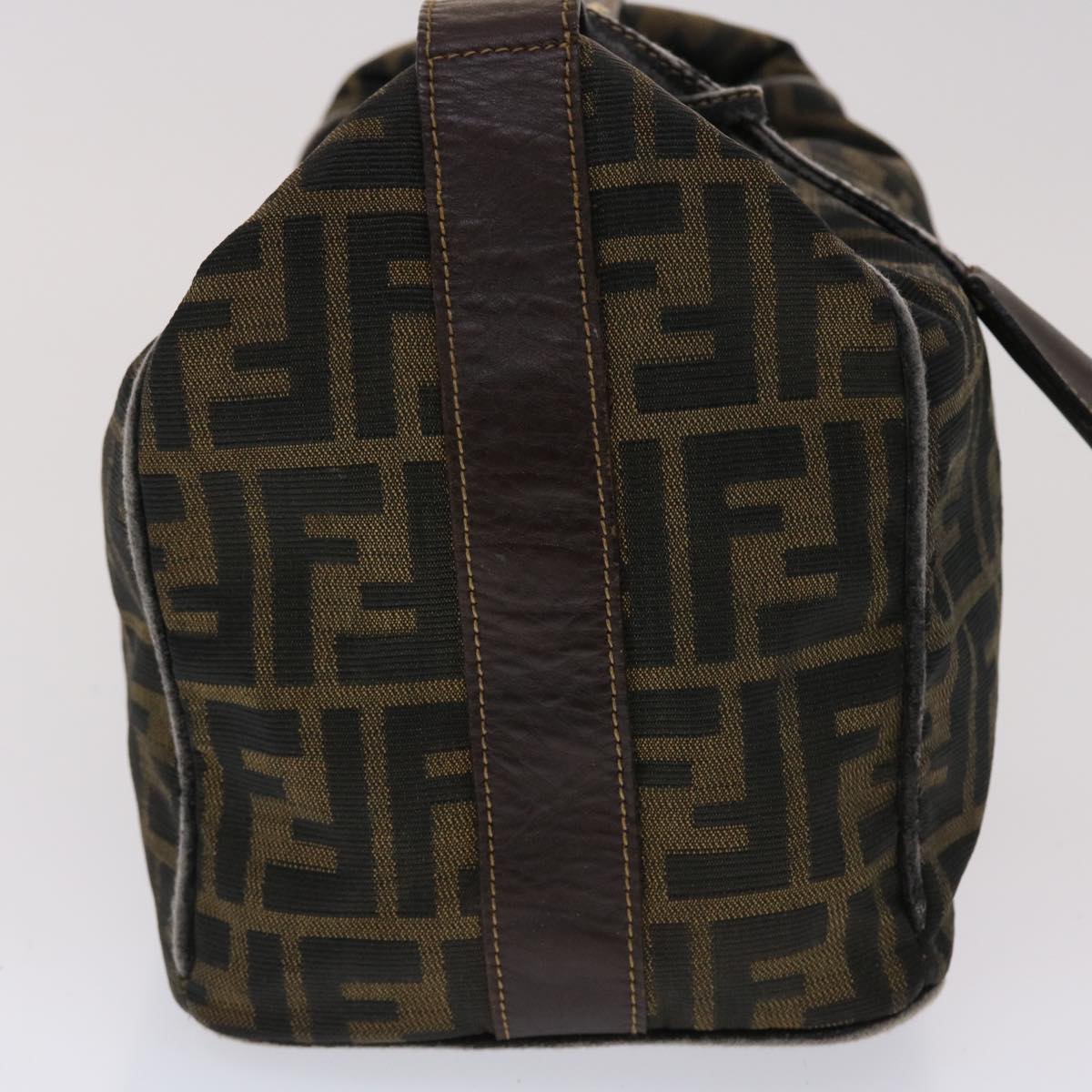 FENDI Zucca Canvas Hand Bag Nylon Brown Black Auth 48233