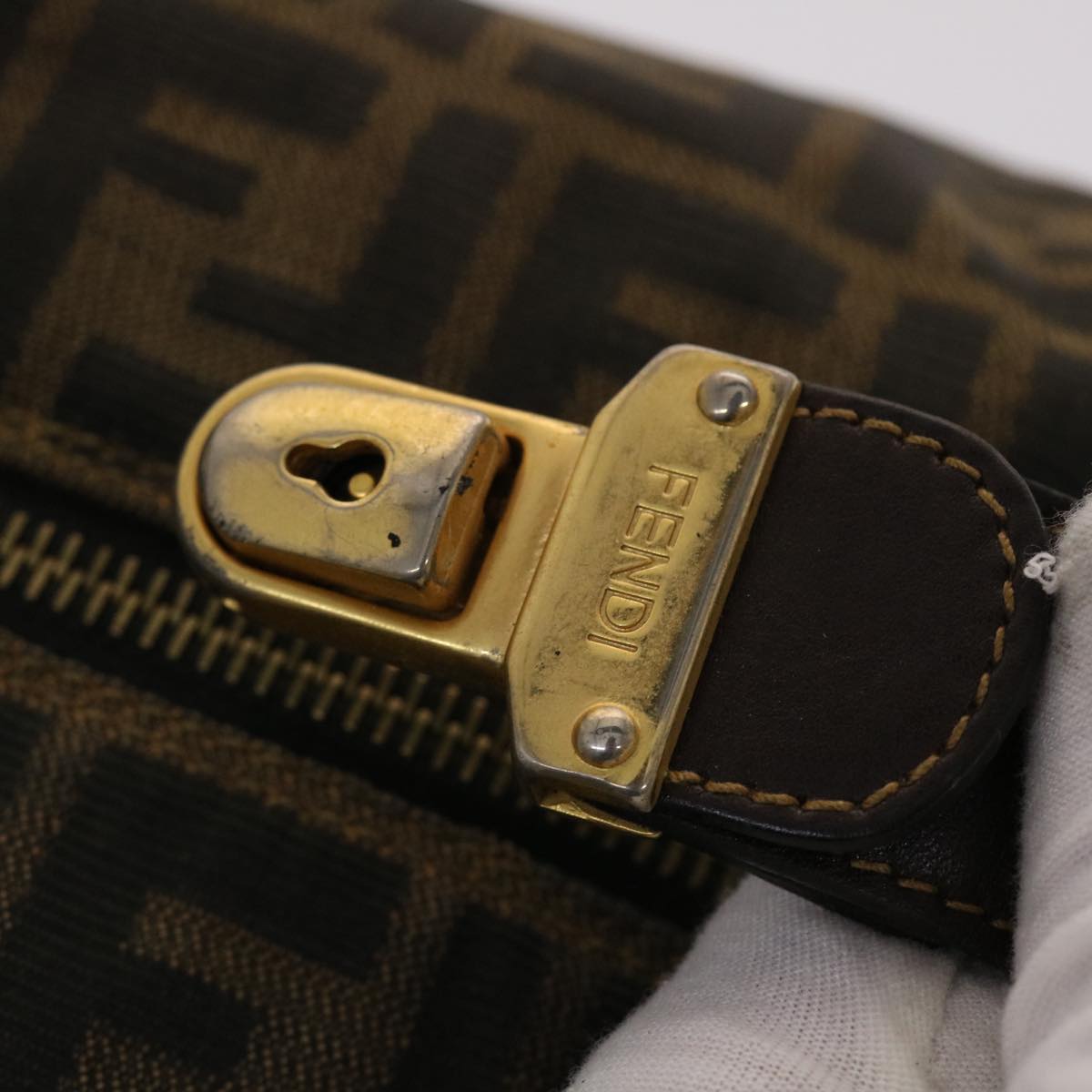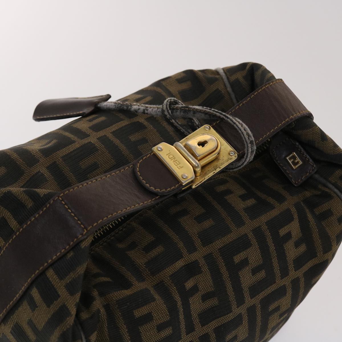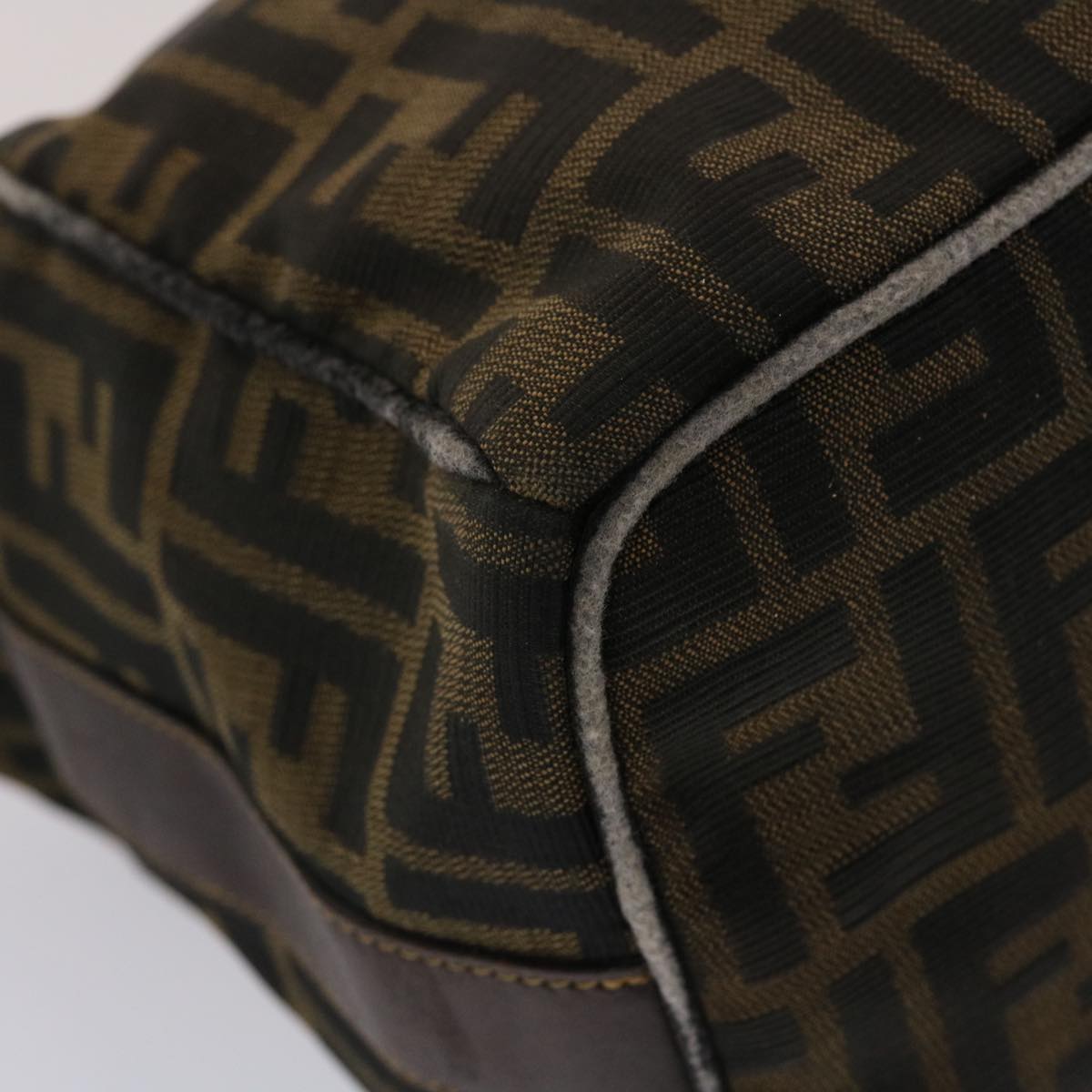 FENDI Zucca Canvas Hand Bag Nylon Brown Black Auth 48233