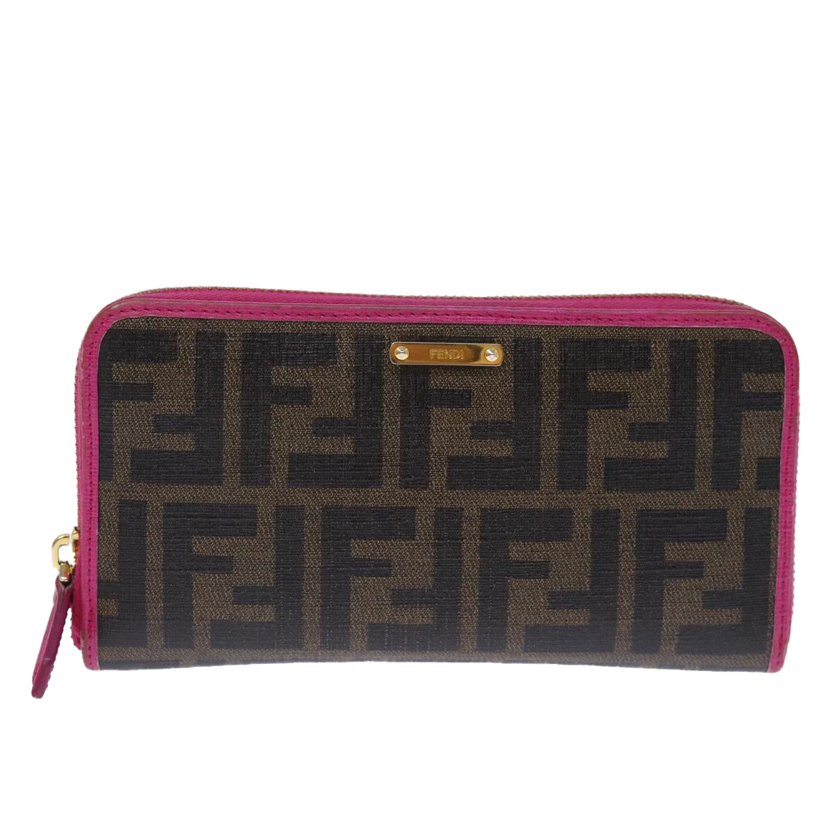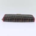 FENDI Zucca Canvas Long Wallet Black Brown Auth yk12323