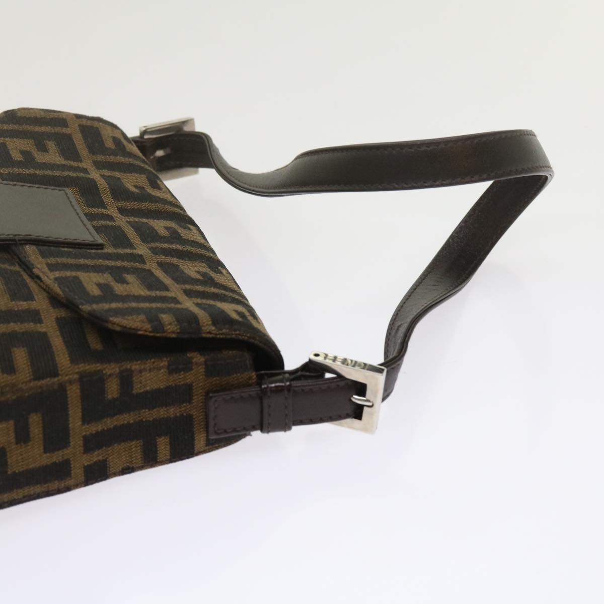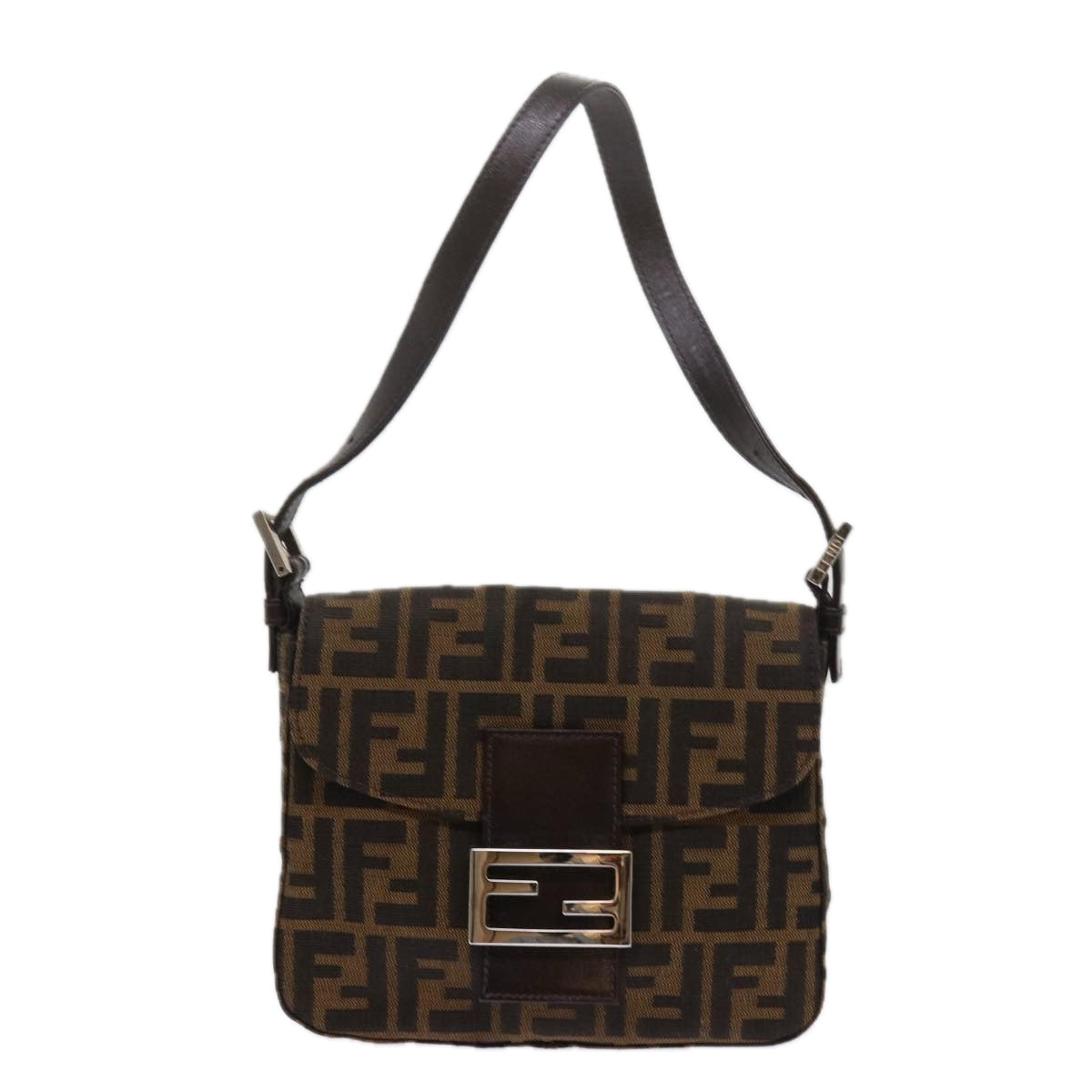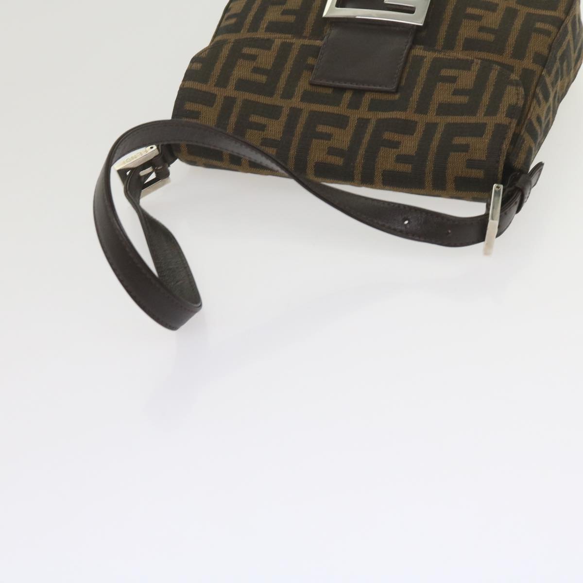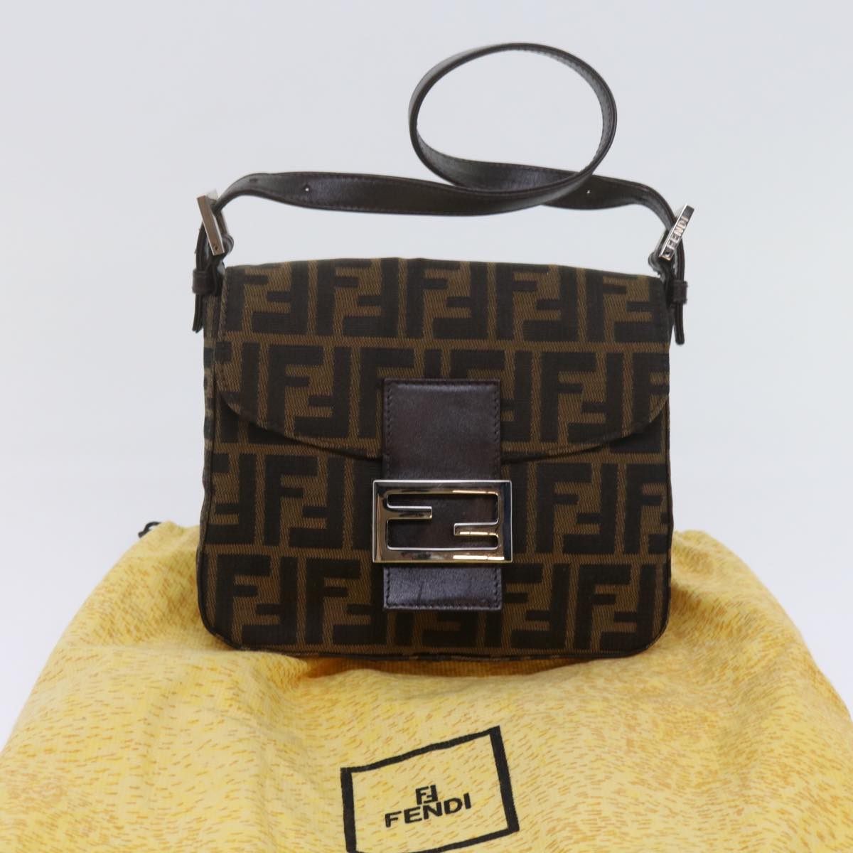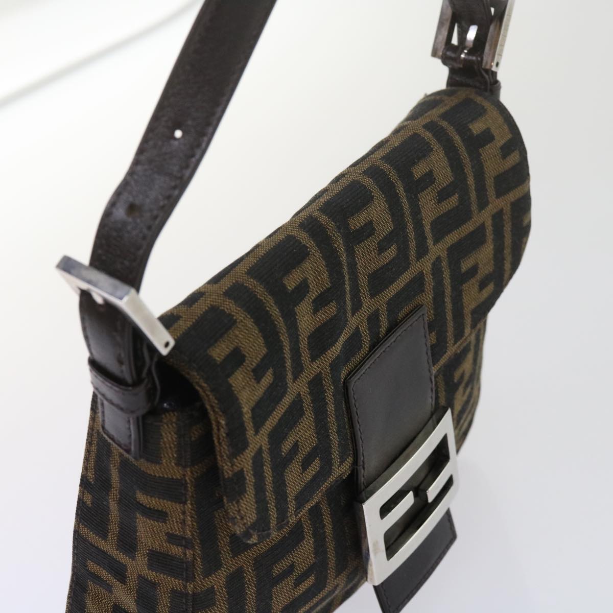 FENDI Zucca Canvas Mamma Baguette Shoulder Bag Black Brown Auth am5417A