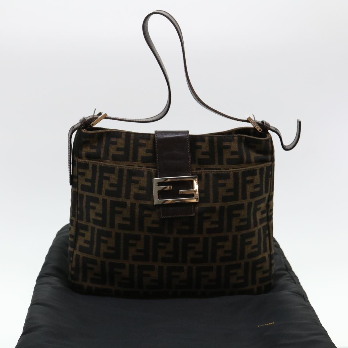 FENDI Zucca Canvas Mamma Baguette Shoulder Bag Brown 2258 26727 009 Auth am4024