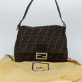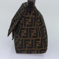 FENDI Zucca Canvas Mamma Baguette Shoulder Bag Brown Black Silver Auth hk1612