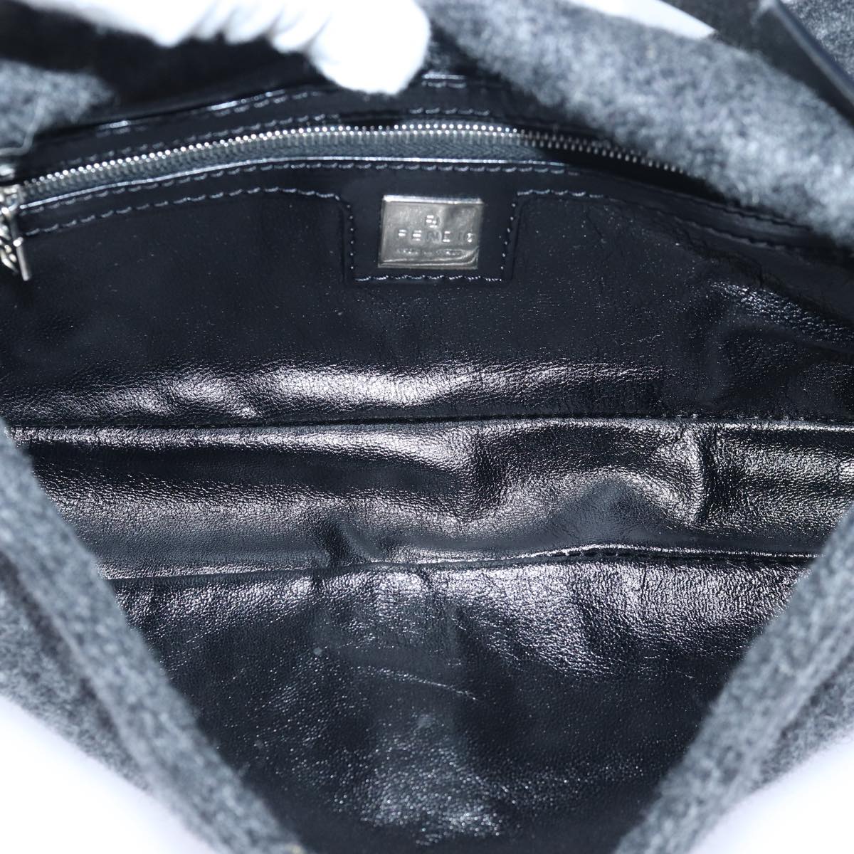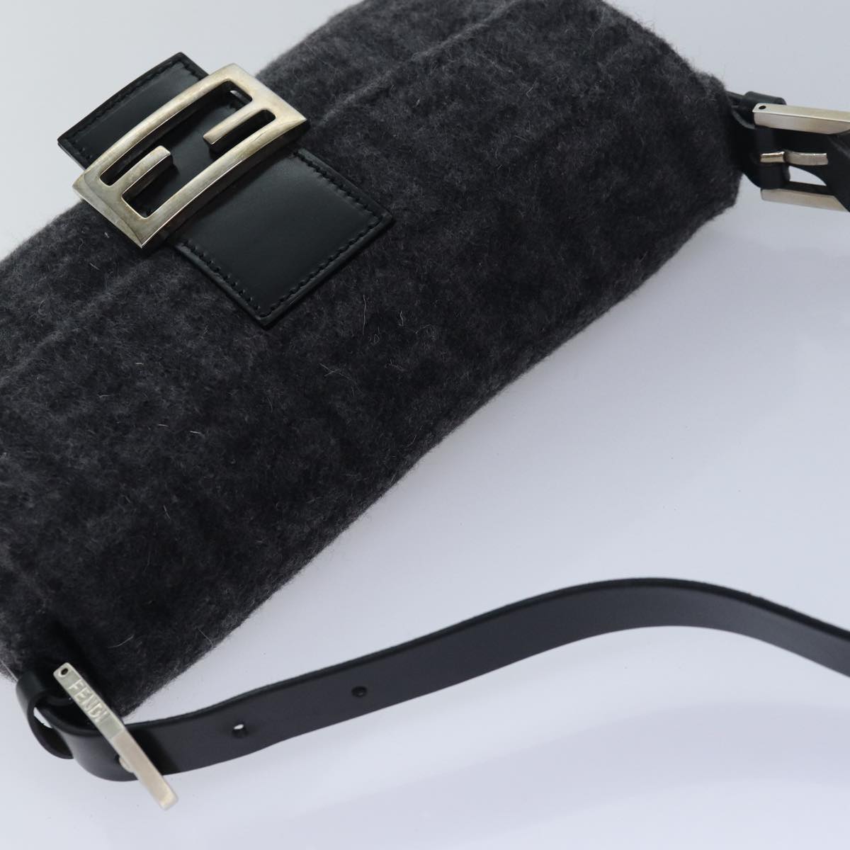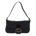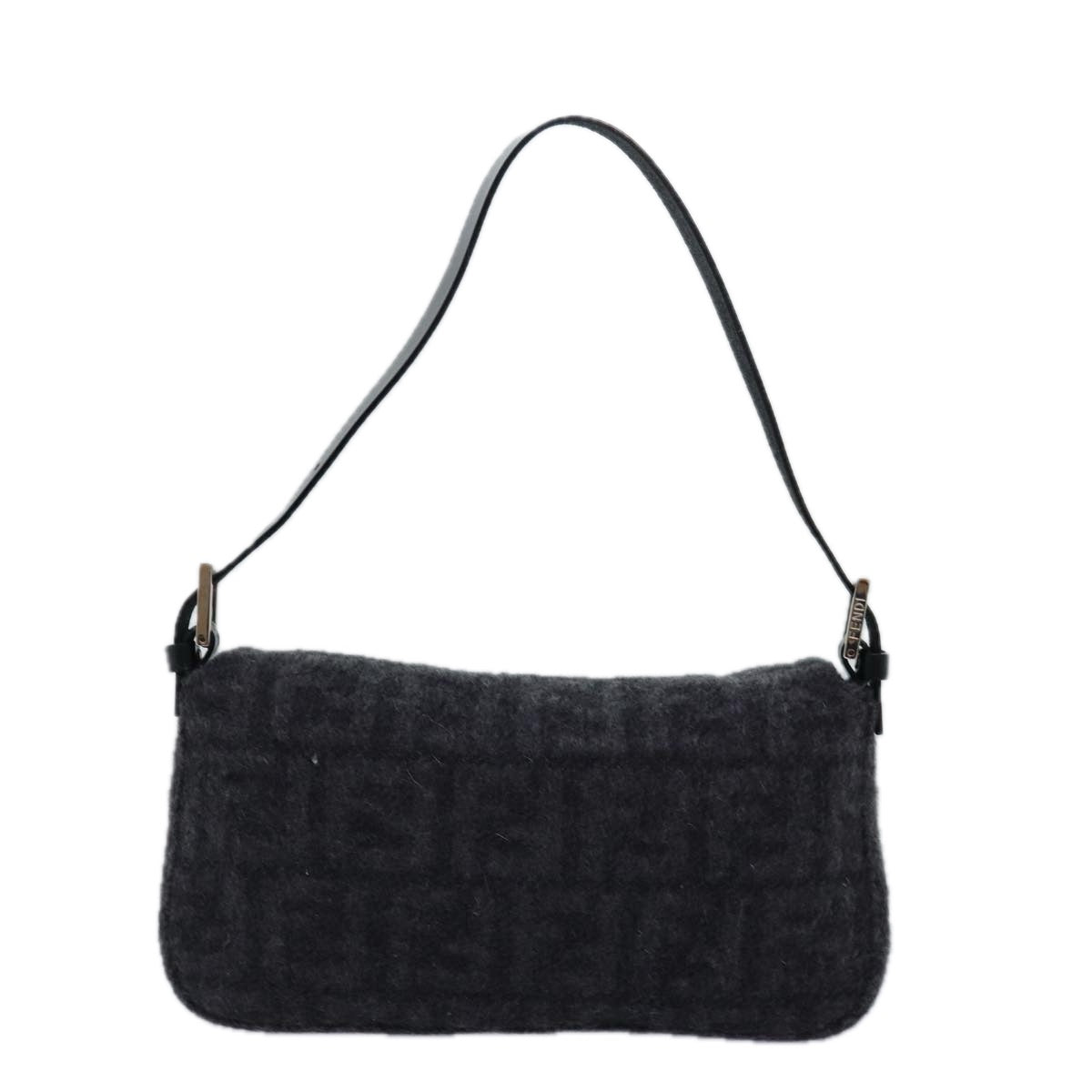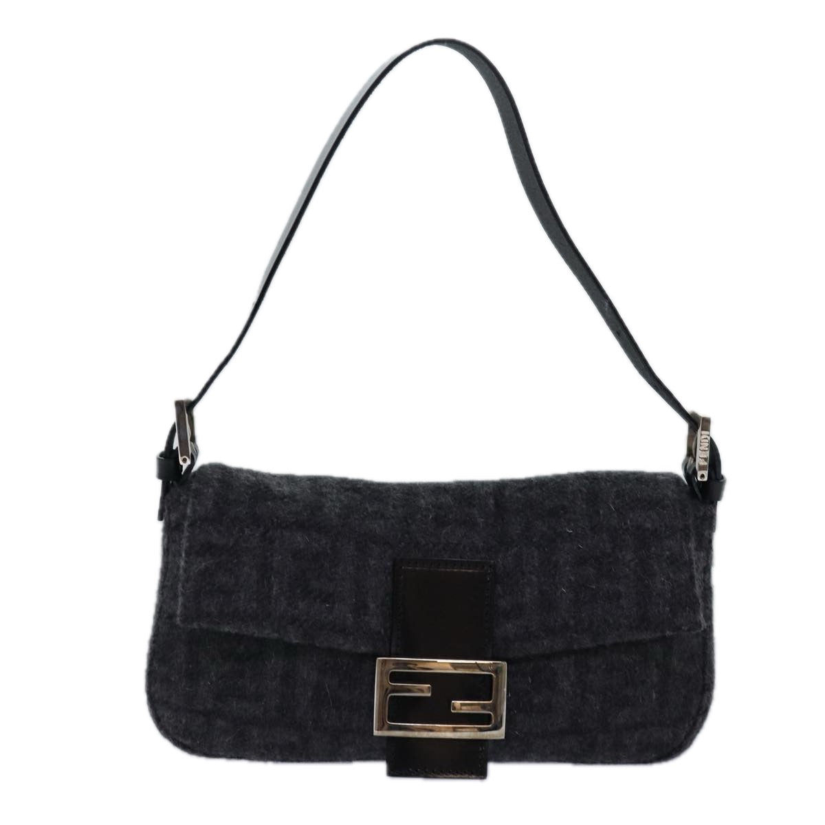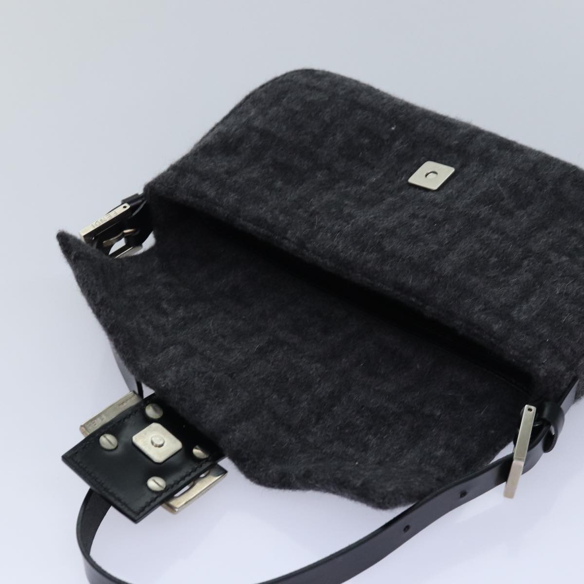 FENDI Zucca Canvas Mamma Baguette Shoulder Bag Wool Black Auth yk13814A