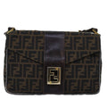 FENDI Zucca Canvas Shoulder Bag Black Brown Auth ep4502