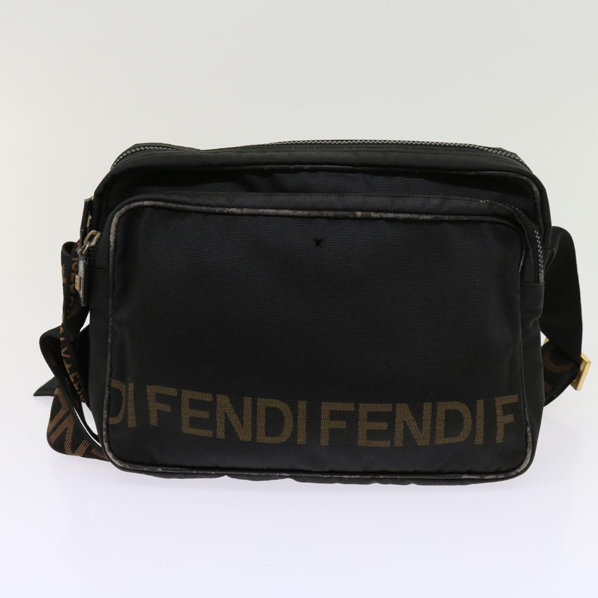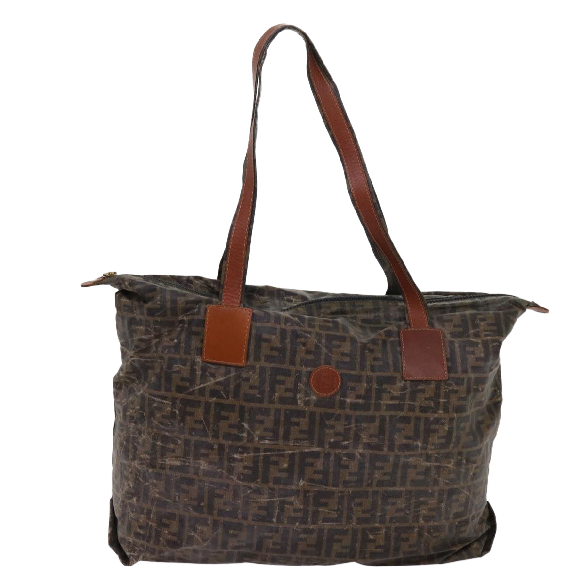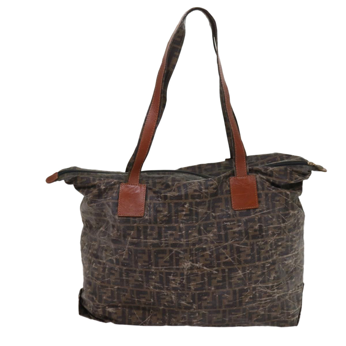 FENDI Zucca Canvas Shoulder Bag Coated Canvas 2Set Brown Black Auth bs10493