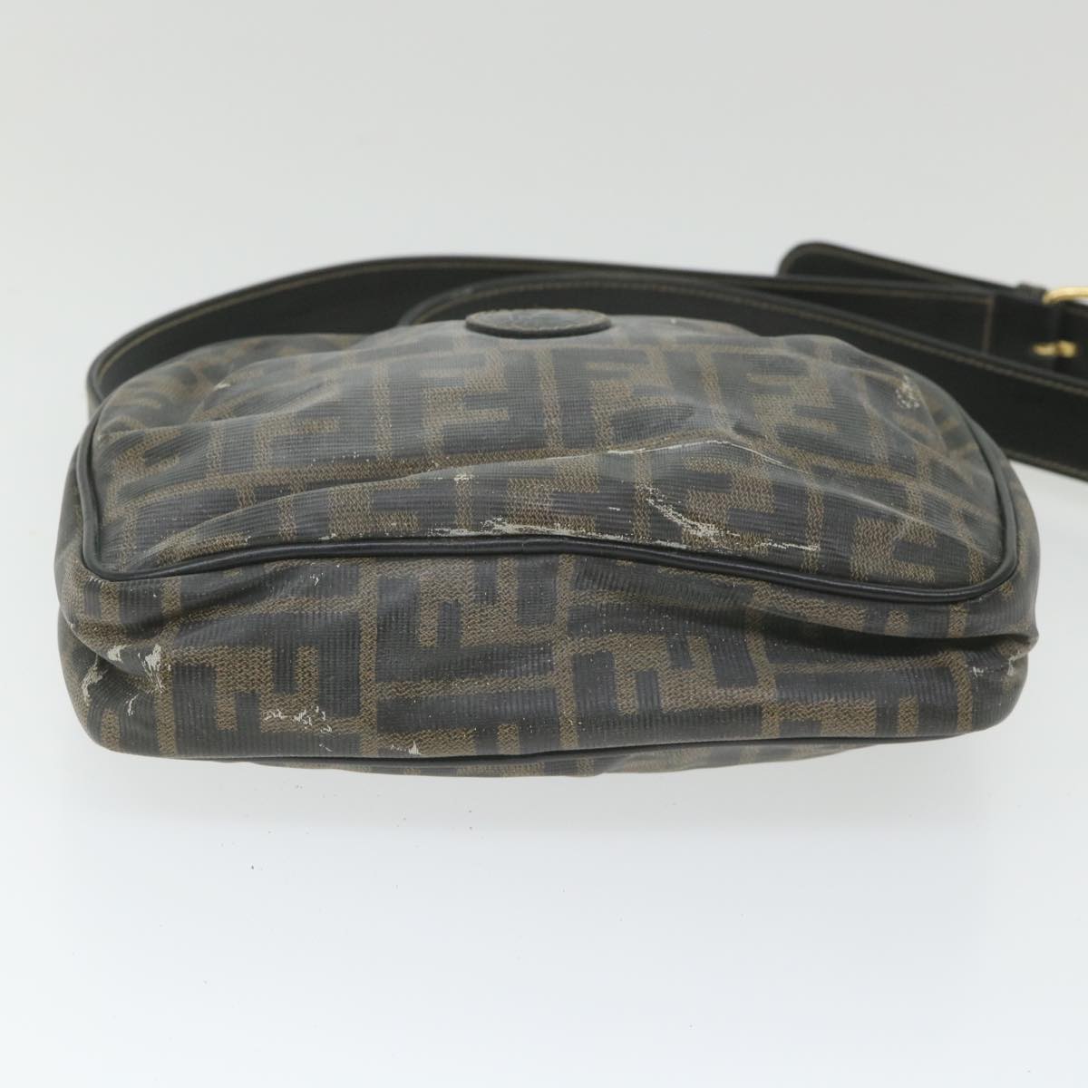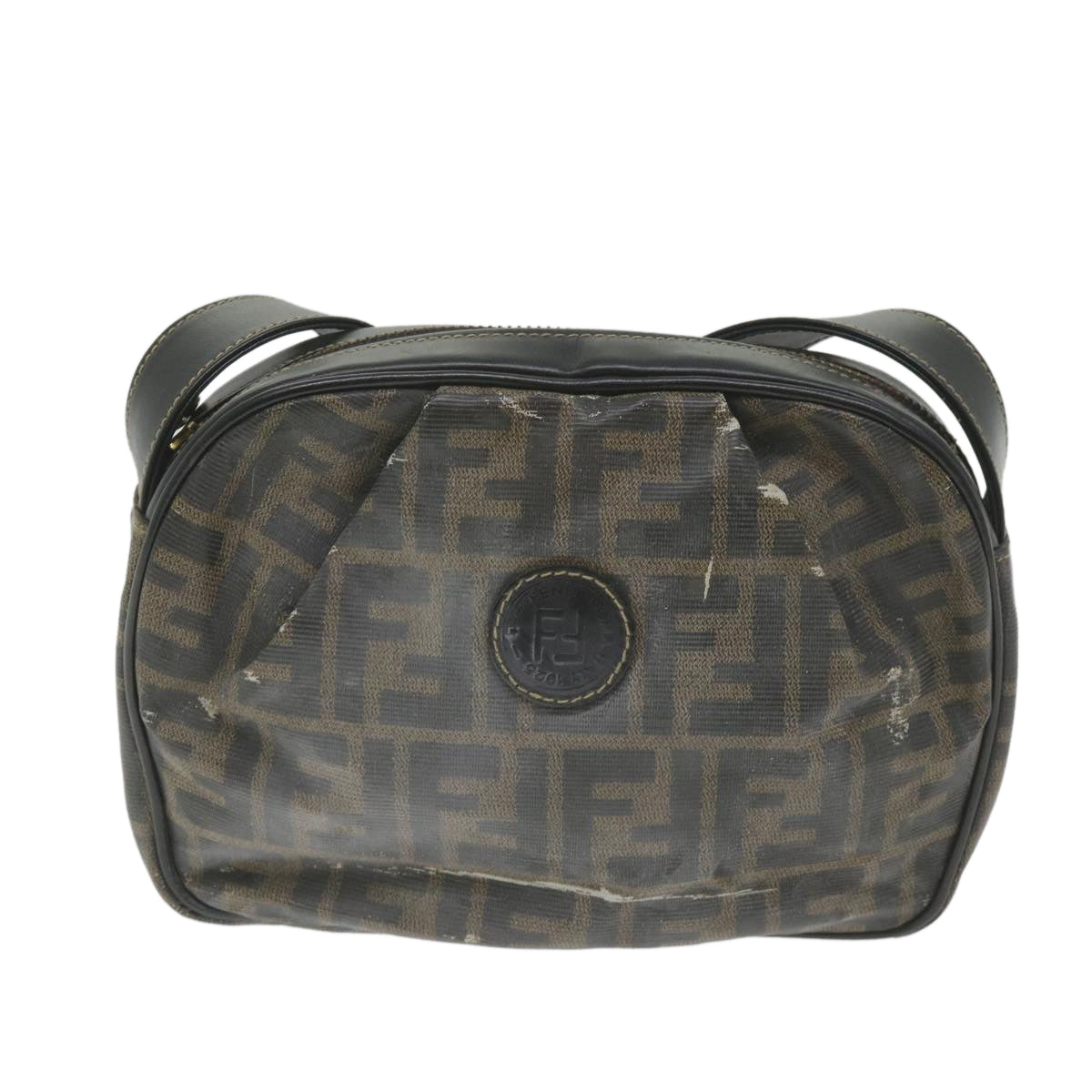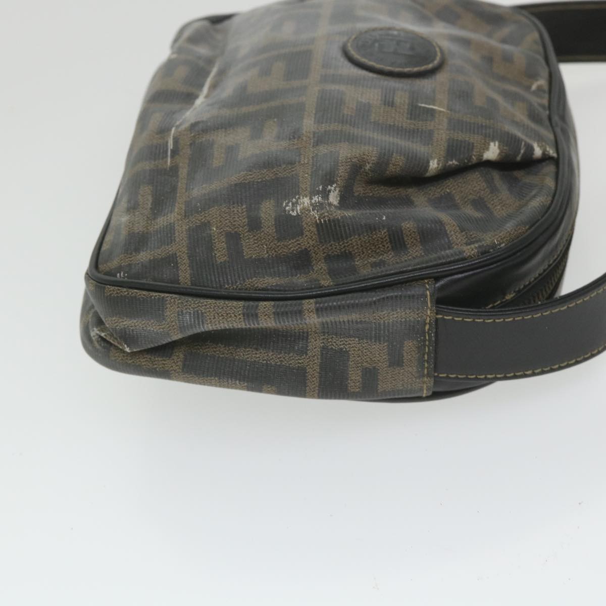 FENDI Zucca Canvas Shoulder Bag Coated Canvas Brown Auth bs9073