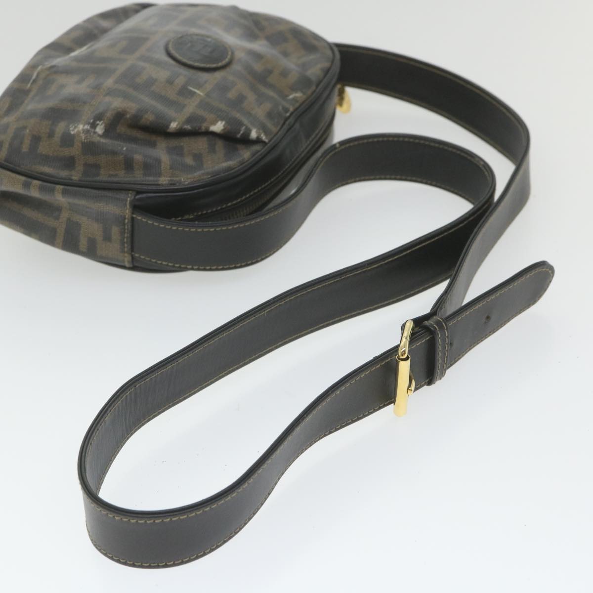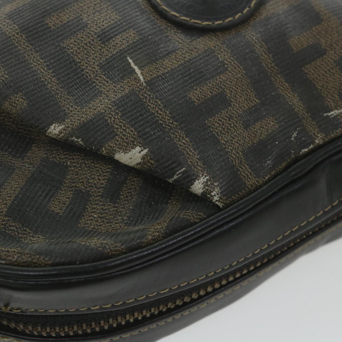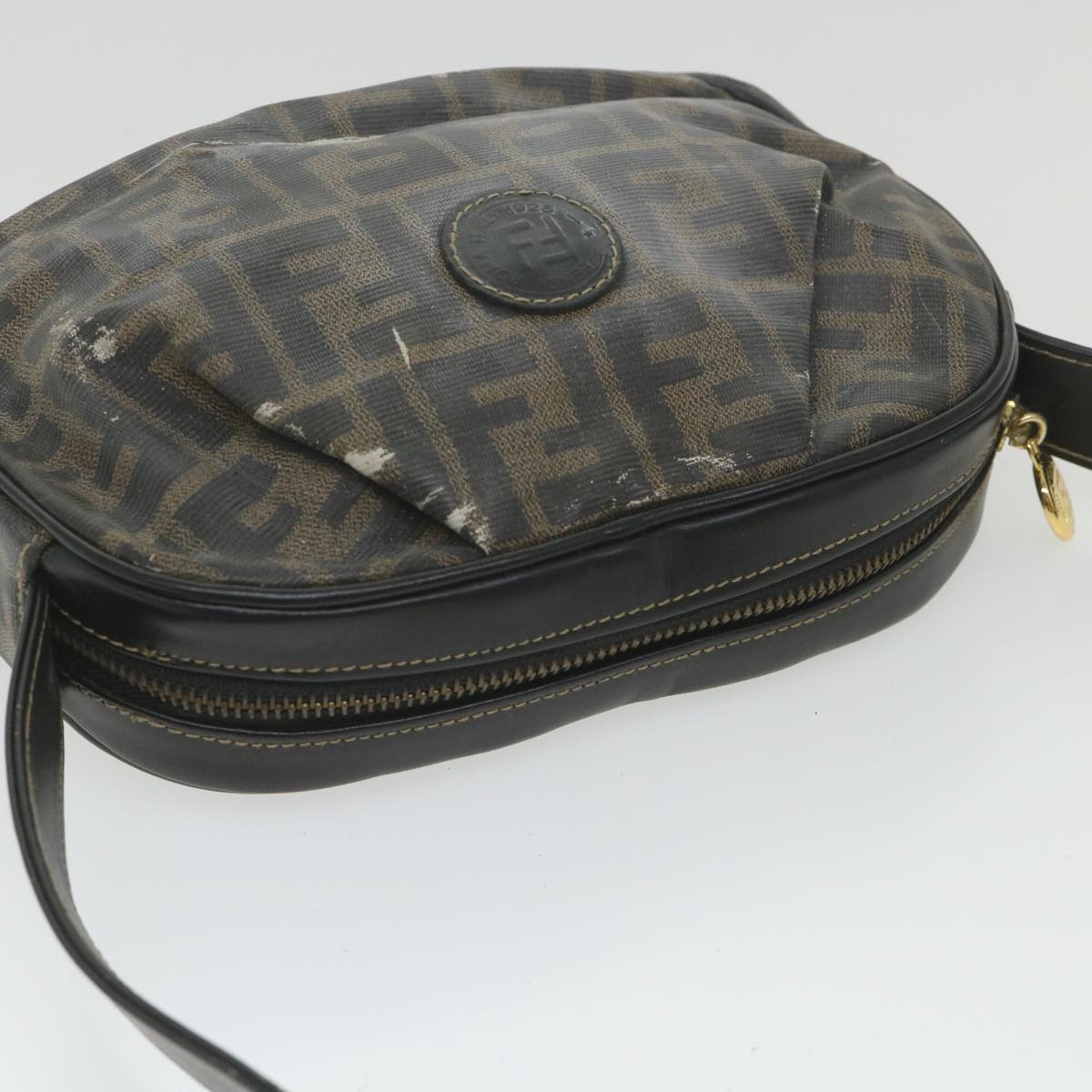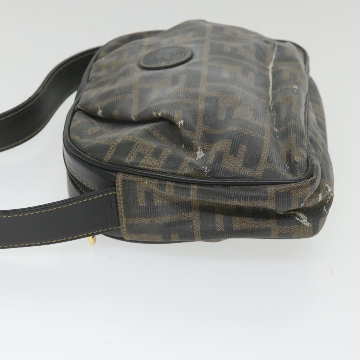 FENDI Zucca Canvas Shoulder Bag Coated Canvas Brown Auth bs9073
