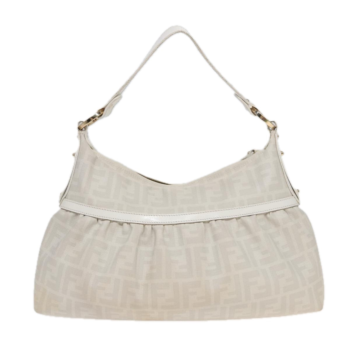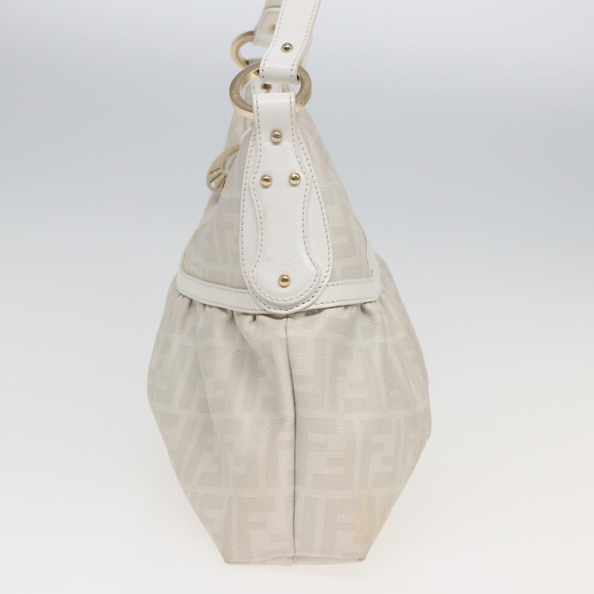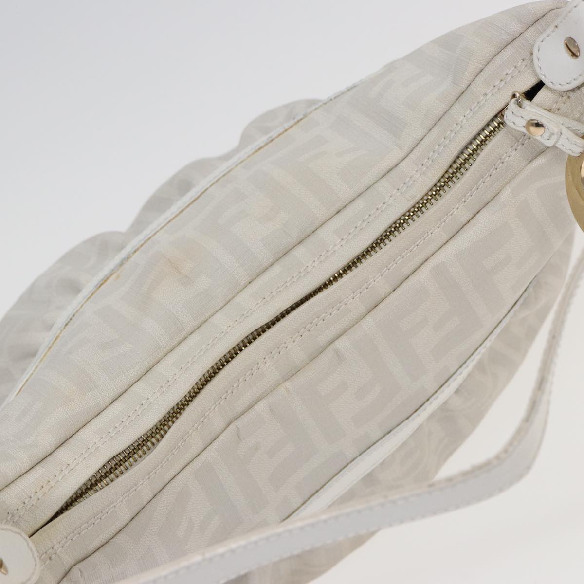 FENDI Zucca Canvas Shoulder Bag PVC Leather White 8BR448 Auth 81645
