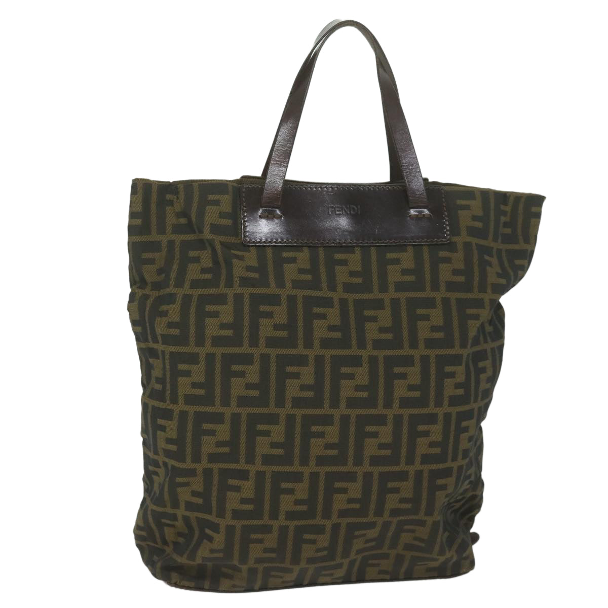 FENDI Zucca Canvas Tote Bag Black Brown Auth ep2809
