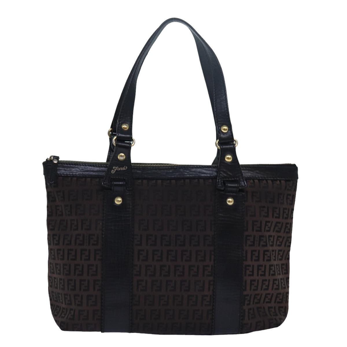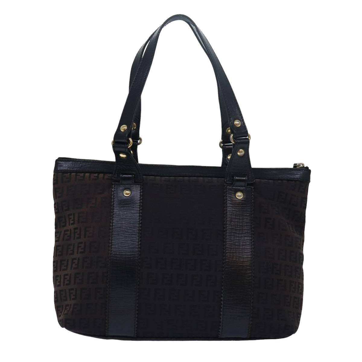 FENDI Zucca Canvas Tote Bag Brown Black Auth 78278
