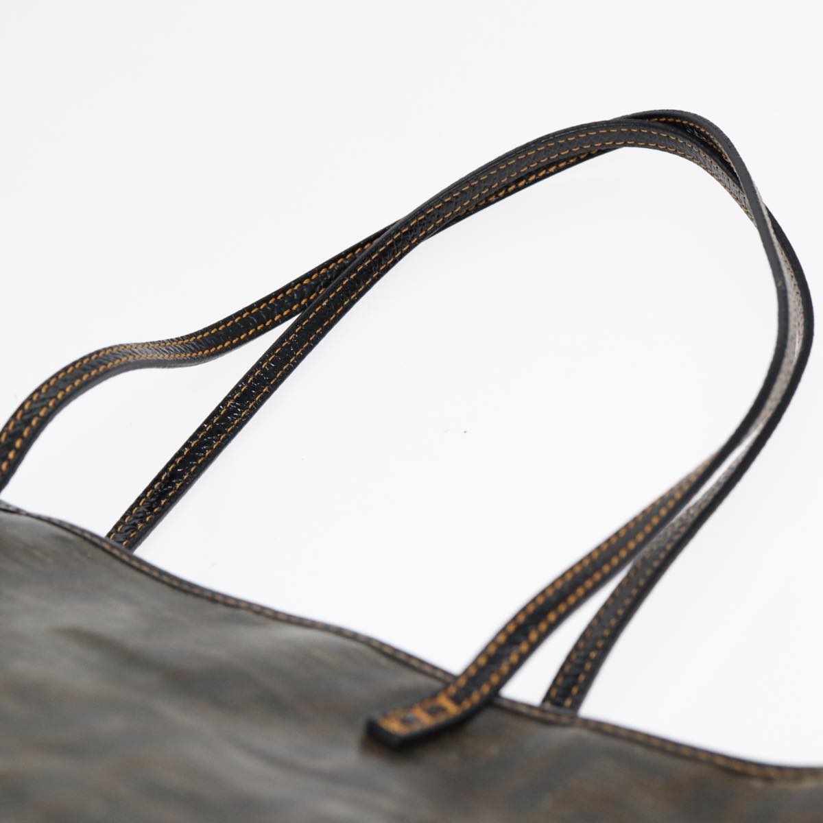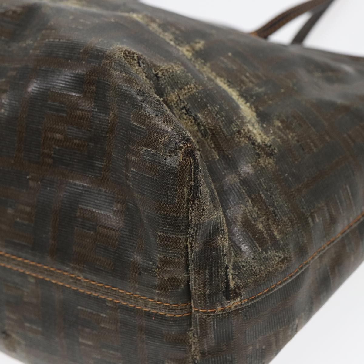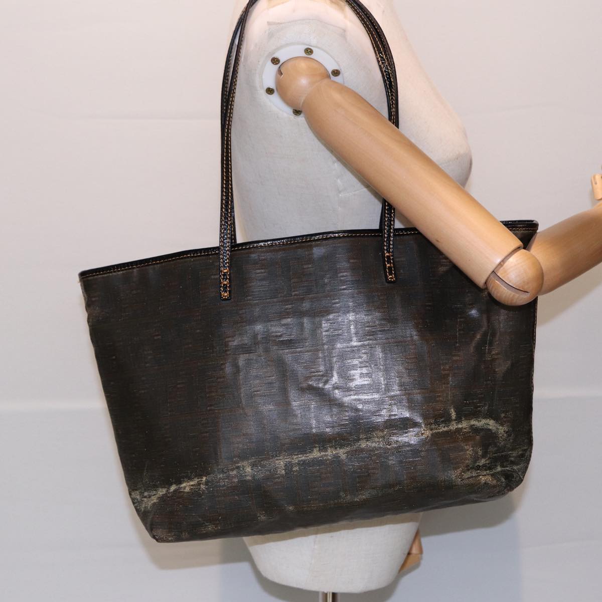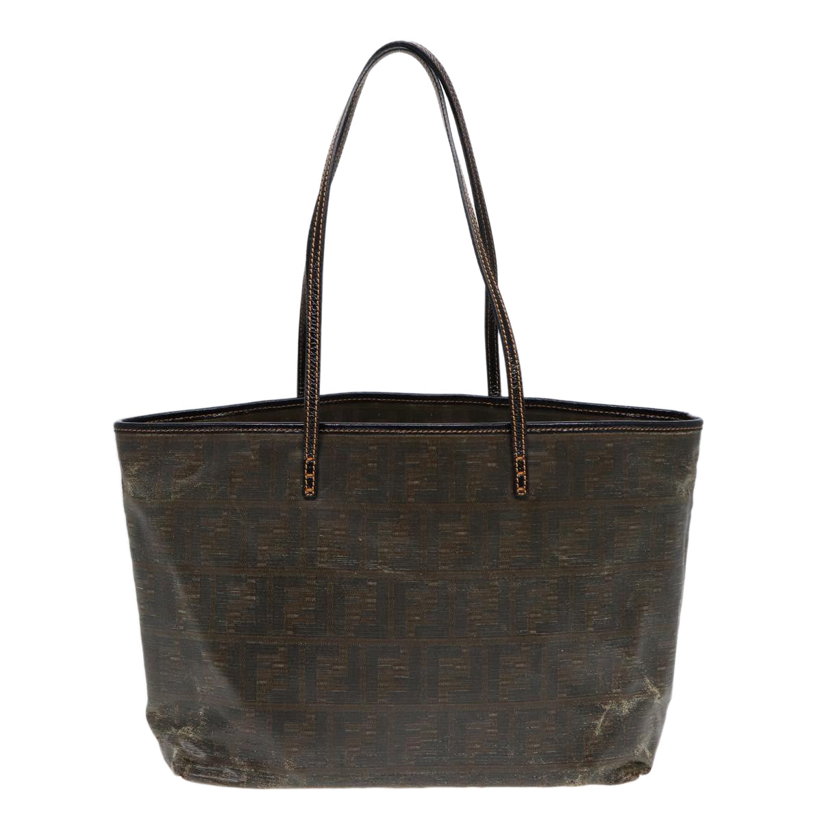 FENDI Zucca Canvas Tote Bag Brown Black Auth 83688