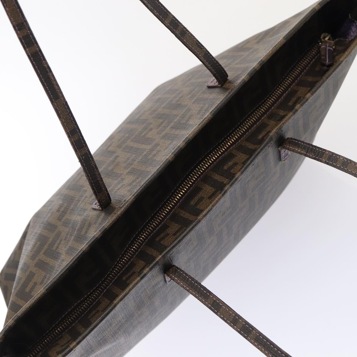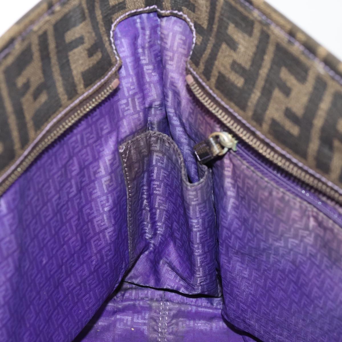 FENDI Zucca Canvas Tote Bag Brown Black Auth 88673