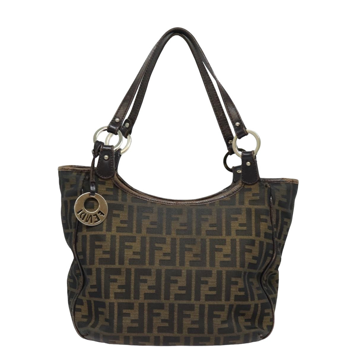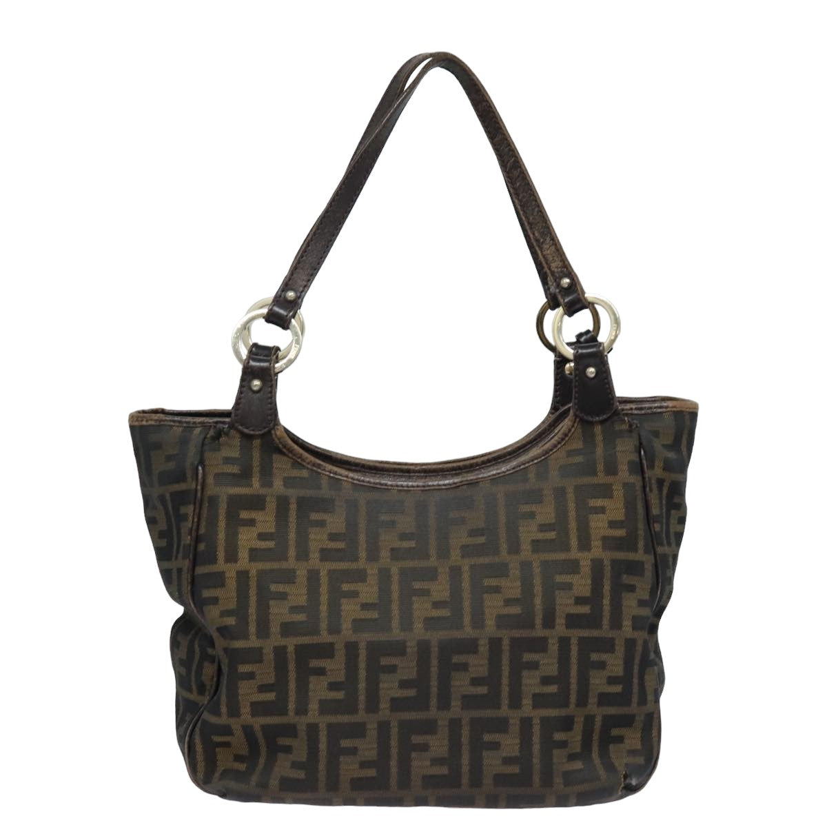 FENDI Zucca Canvas Tote Bag Brown Black Auth ep4207