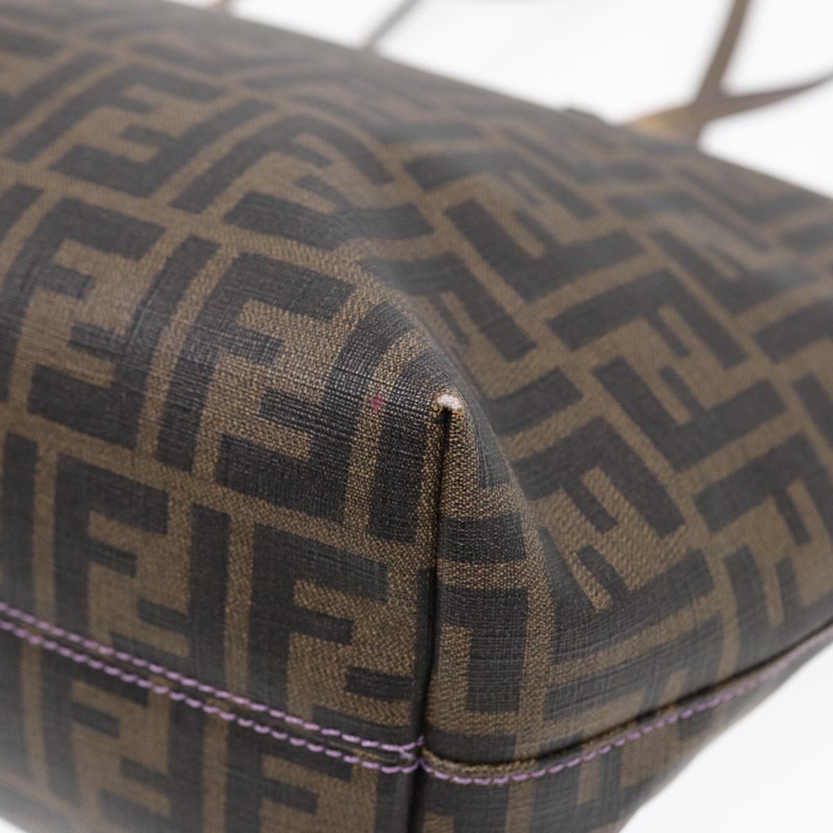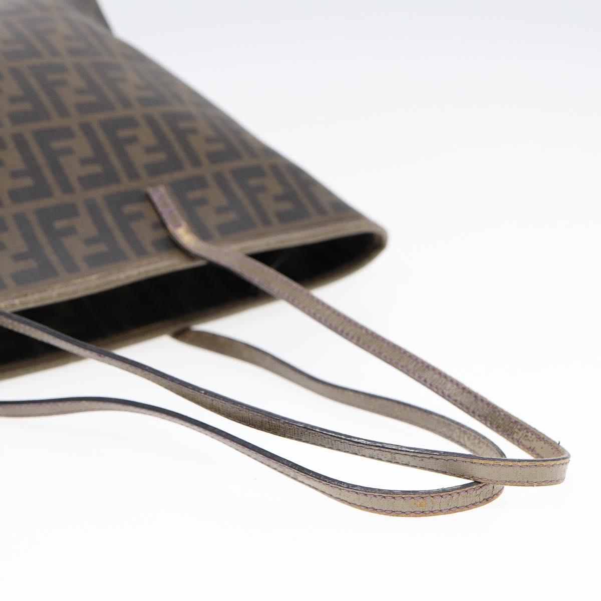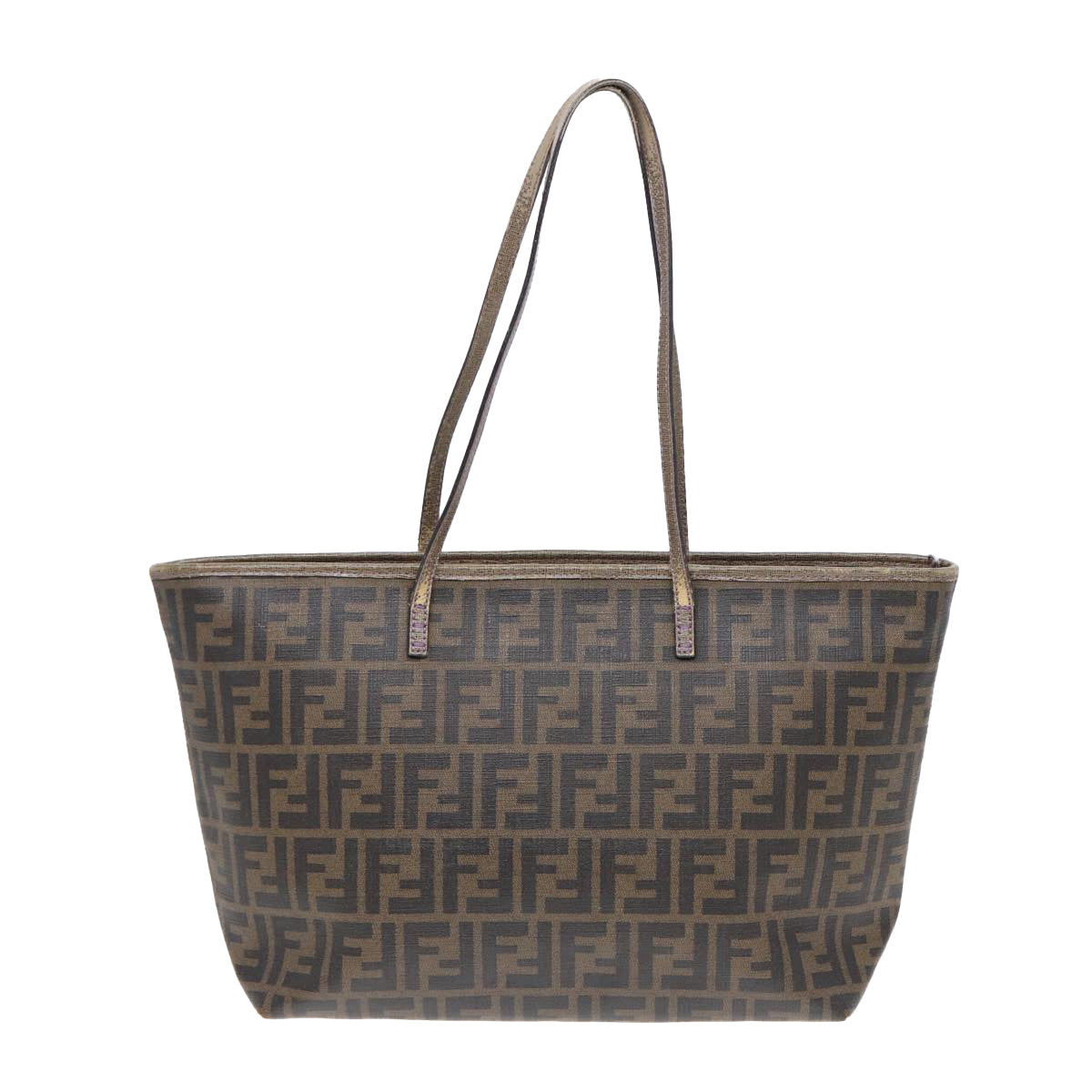 FENDI Zucca Canvas Tote Bag Brown Black gold Auth ep5268