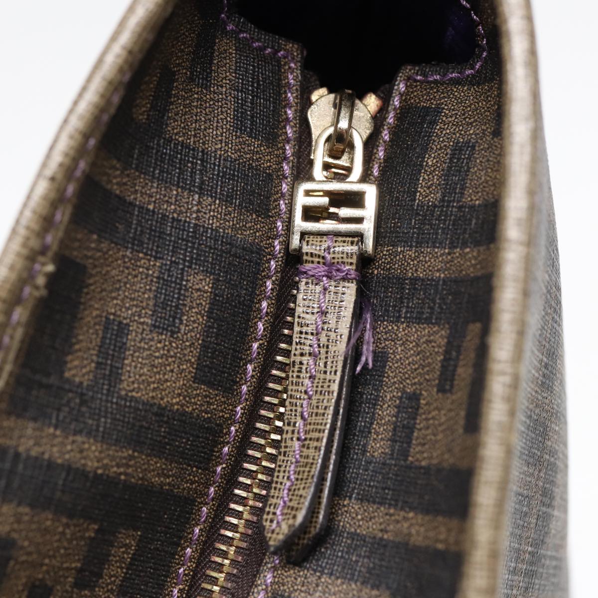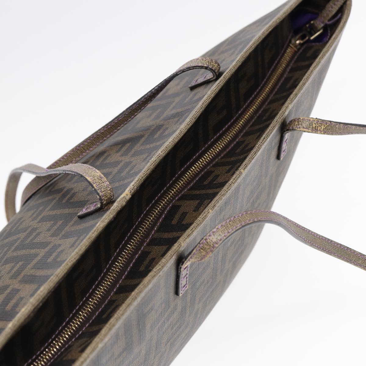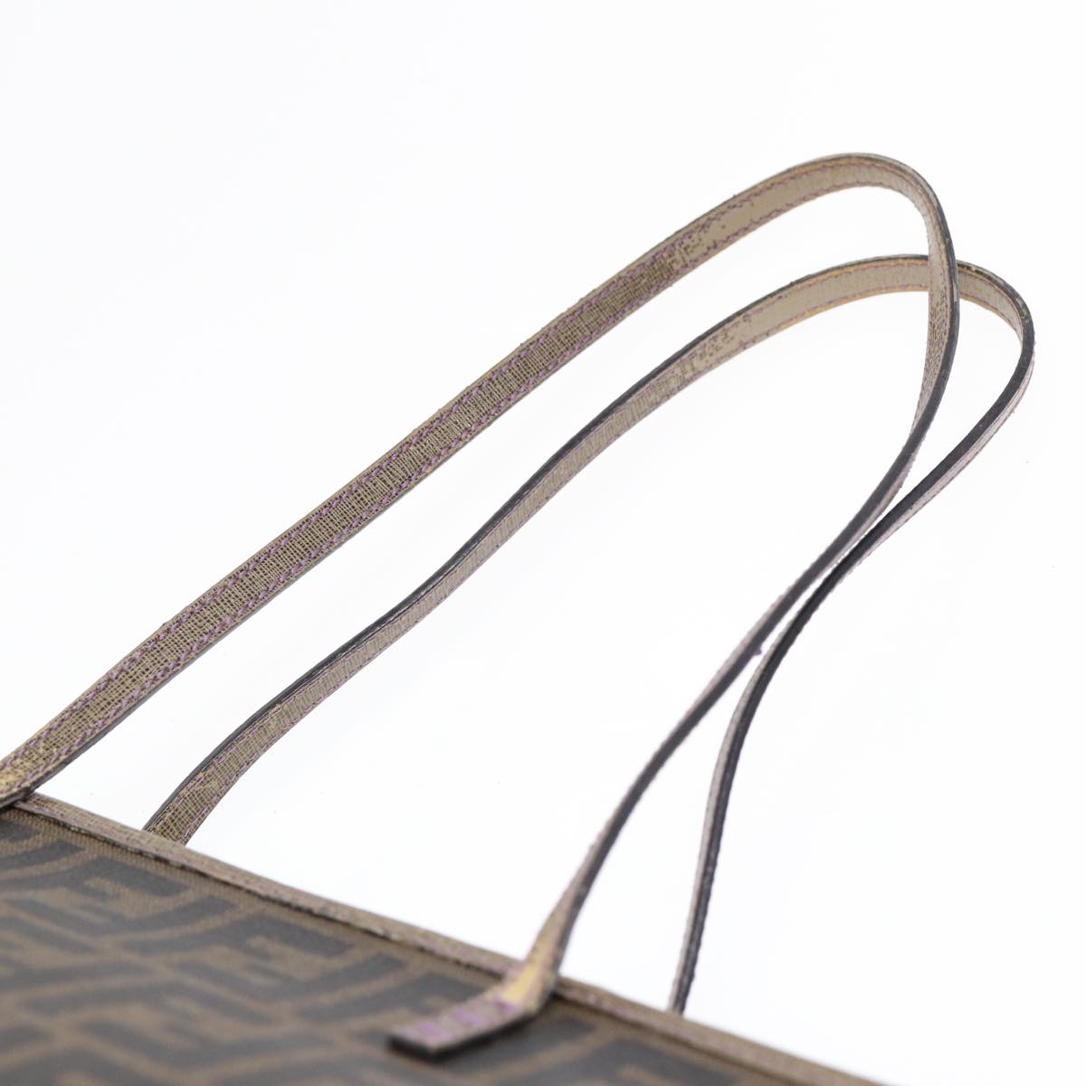 FENDI Zucca Canvas Tote Bag Brown Black gold Auth ep5268
