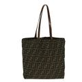 FENDI Zucca Canvas Tote Bag Brown Black Silver Auth ti2007
