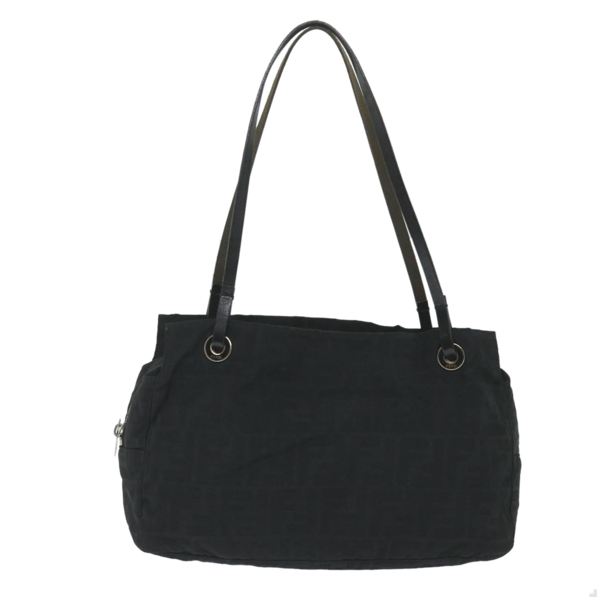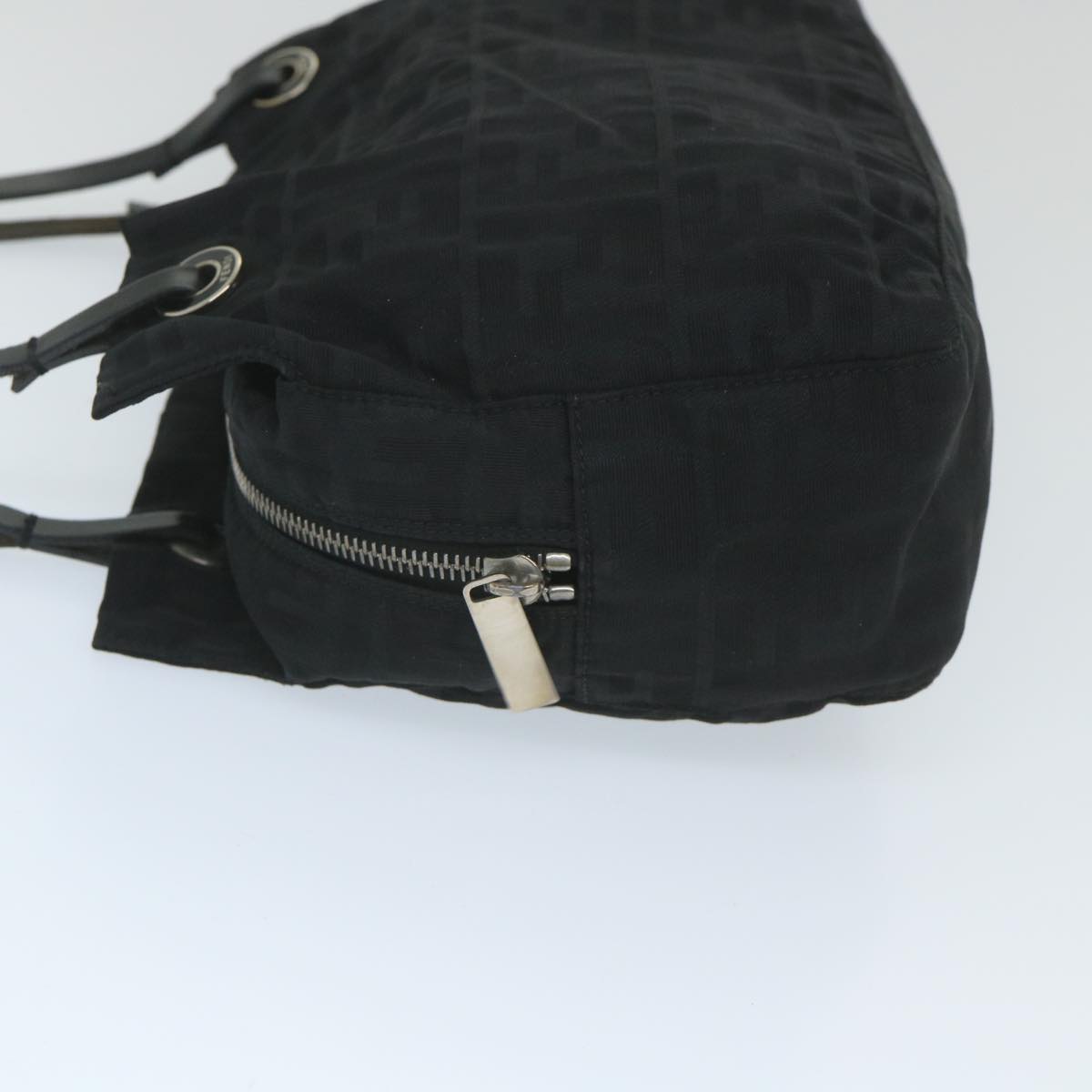 FENDI Zucca Canvas Tote Bag Nylon Leather Black Auth ac2414