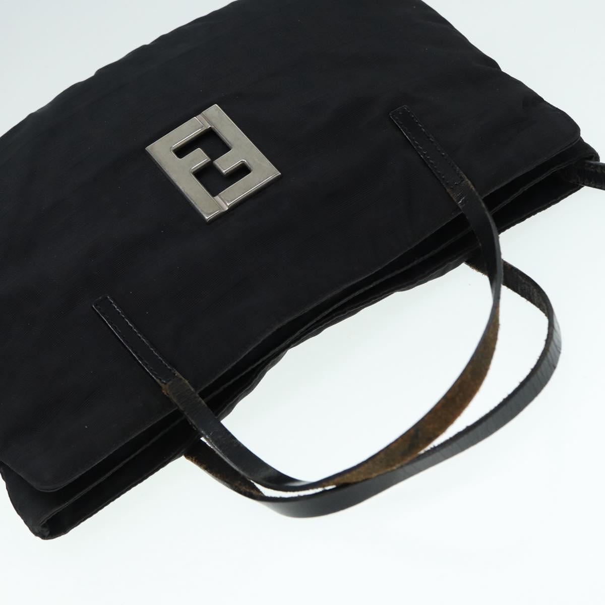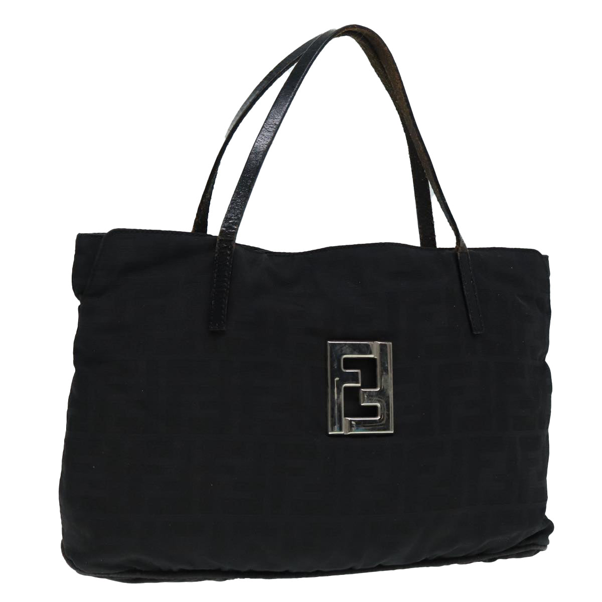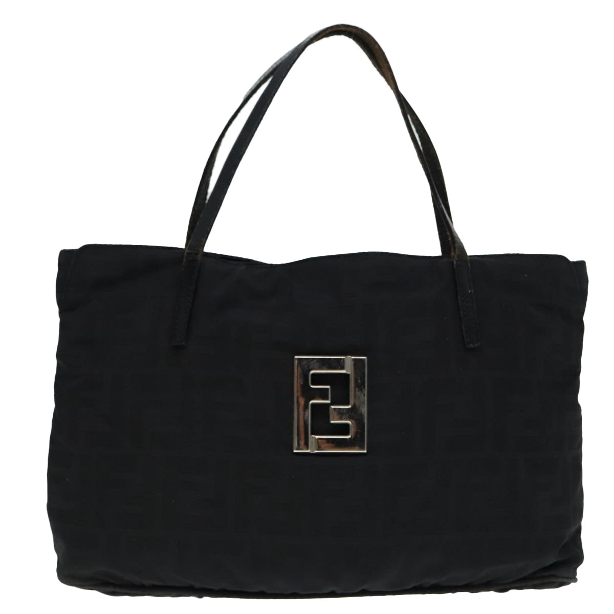 FENDI Zucca Canvas Tote Bag Silver Black Auth 88546