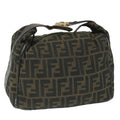 FENDI Zucca Canvas Vanity Cosmetic Pouch Black Brown Auth 56386