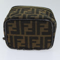FENDI Zucca Canvas Vanity Cosmetic Pouch Brown Black Auth 71829