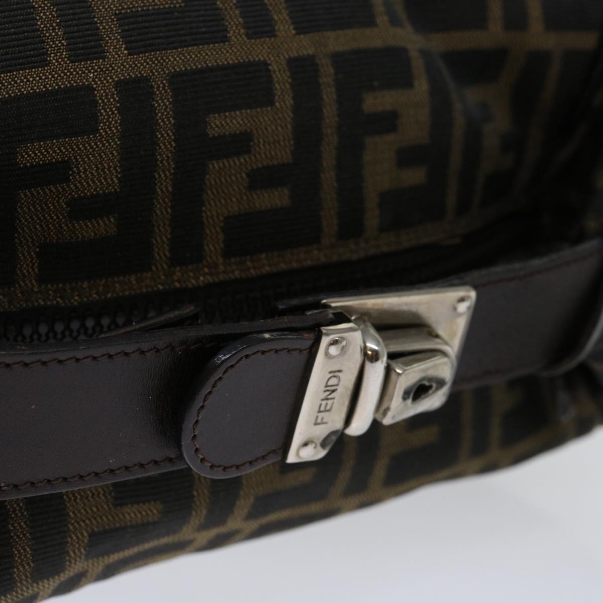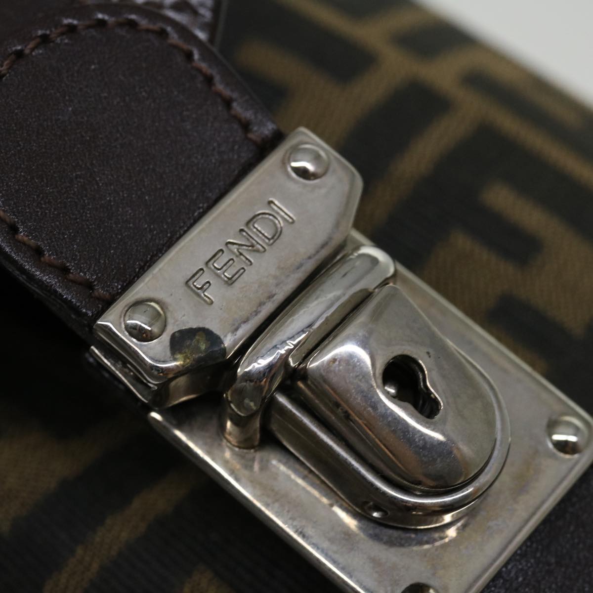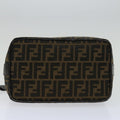 FENDI Zucca Canvas Vanity Hand Bag Brown Black Auth 69671