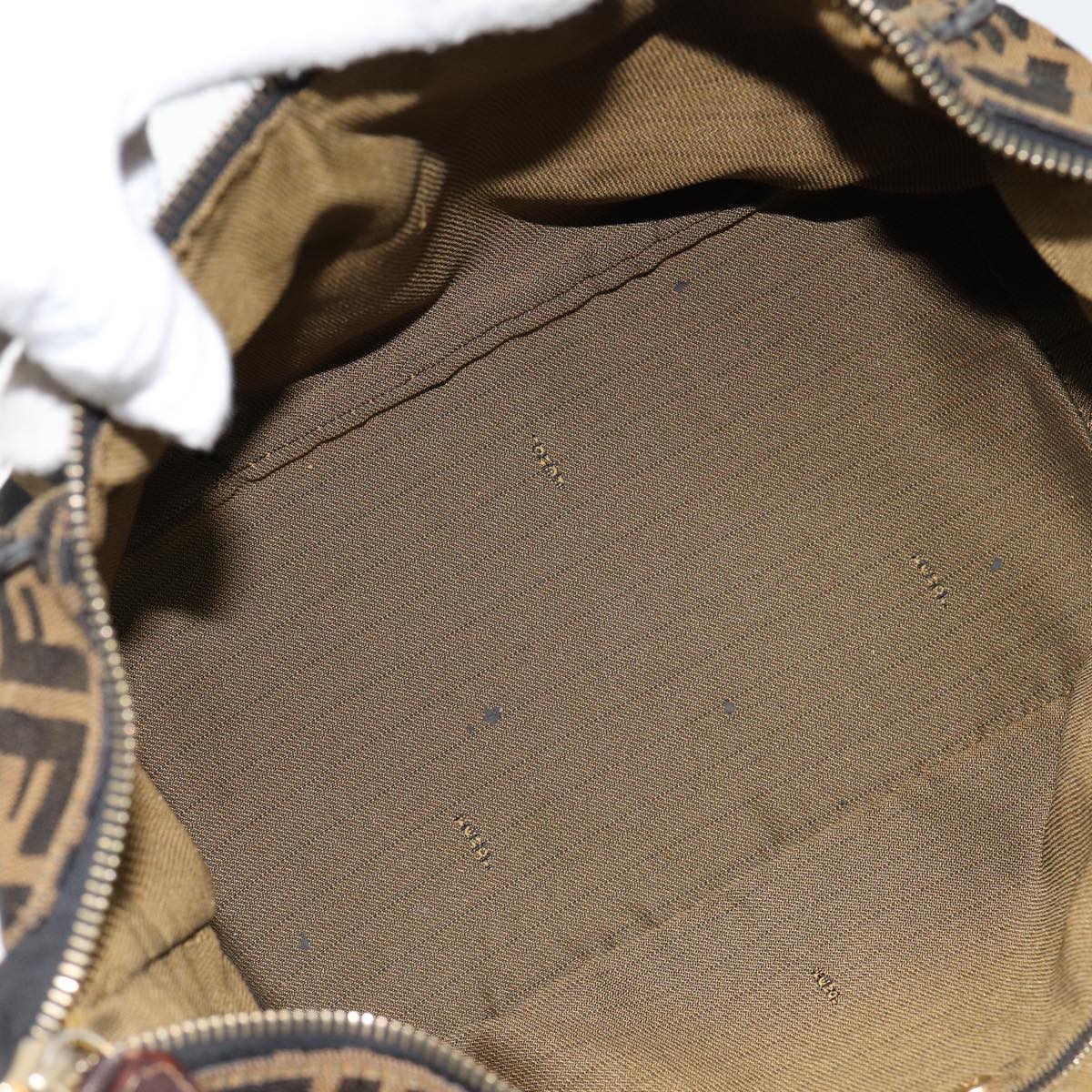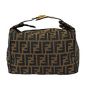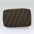 FENDI Zucca Canvas Vanity Hand Bag Brown Black gold Auth bs17761