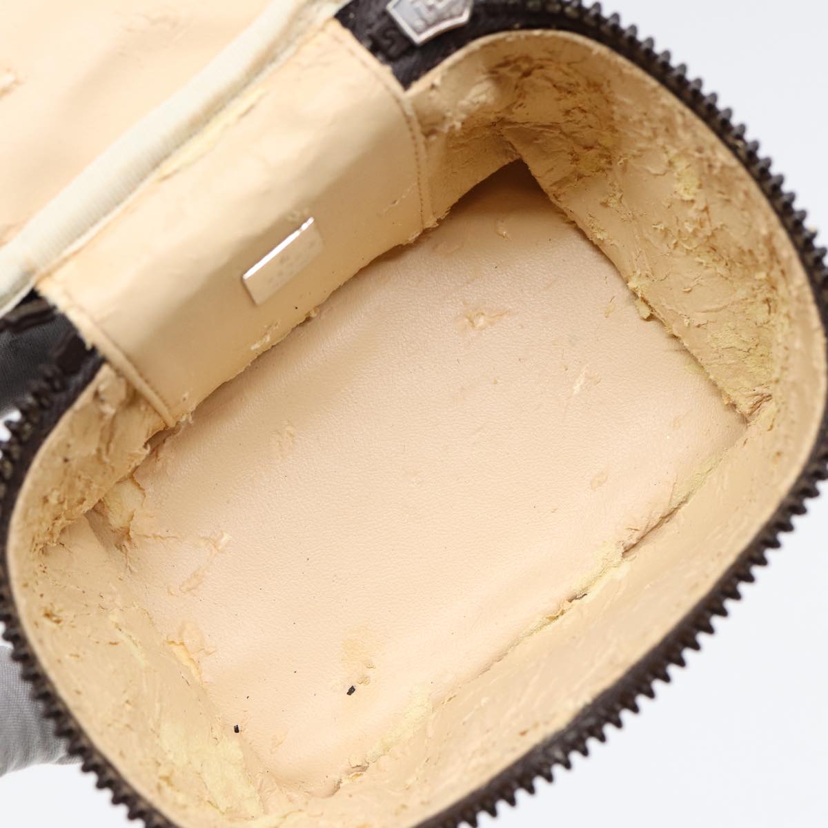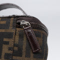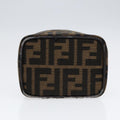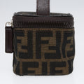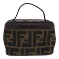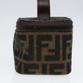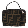 FENDI Zucca Canvas Vanity Hand Bag Brown Black Silver Auth 88313
