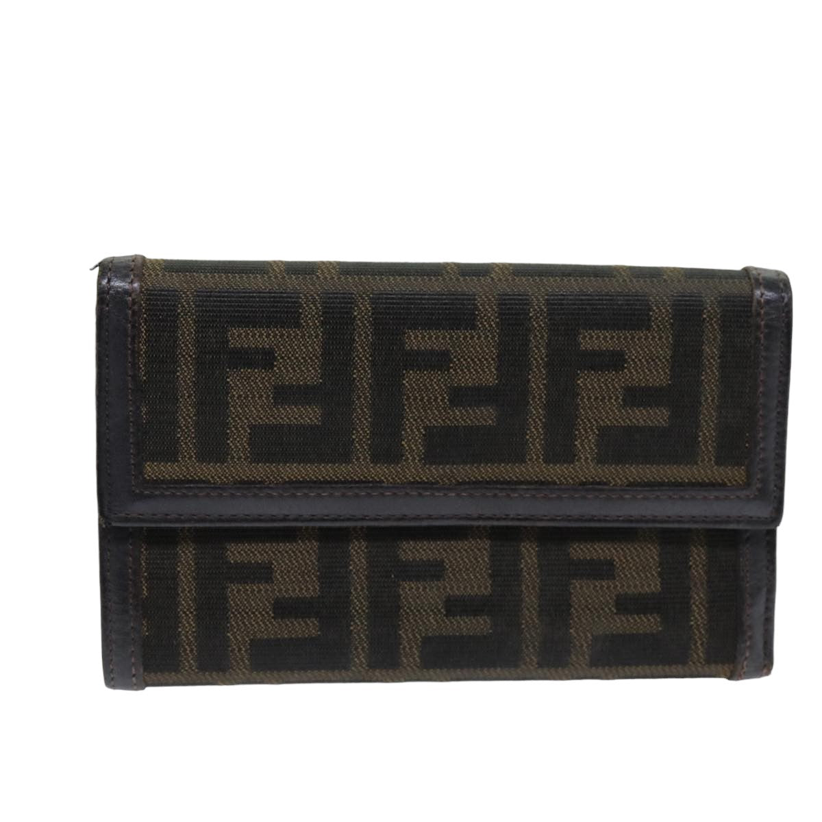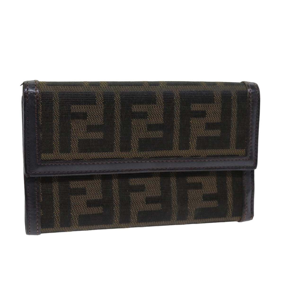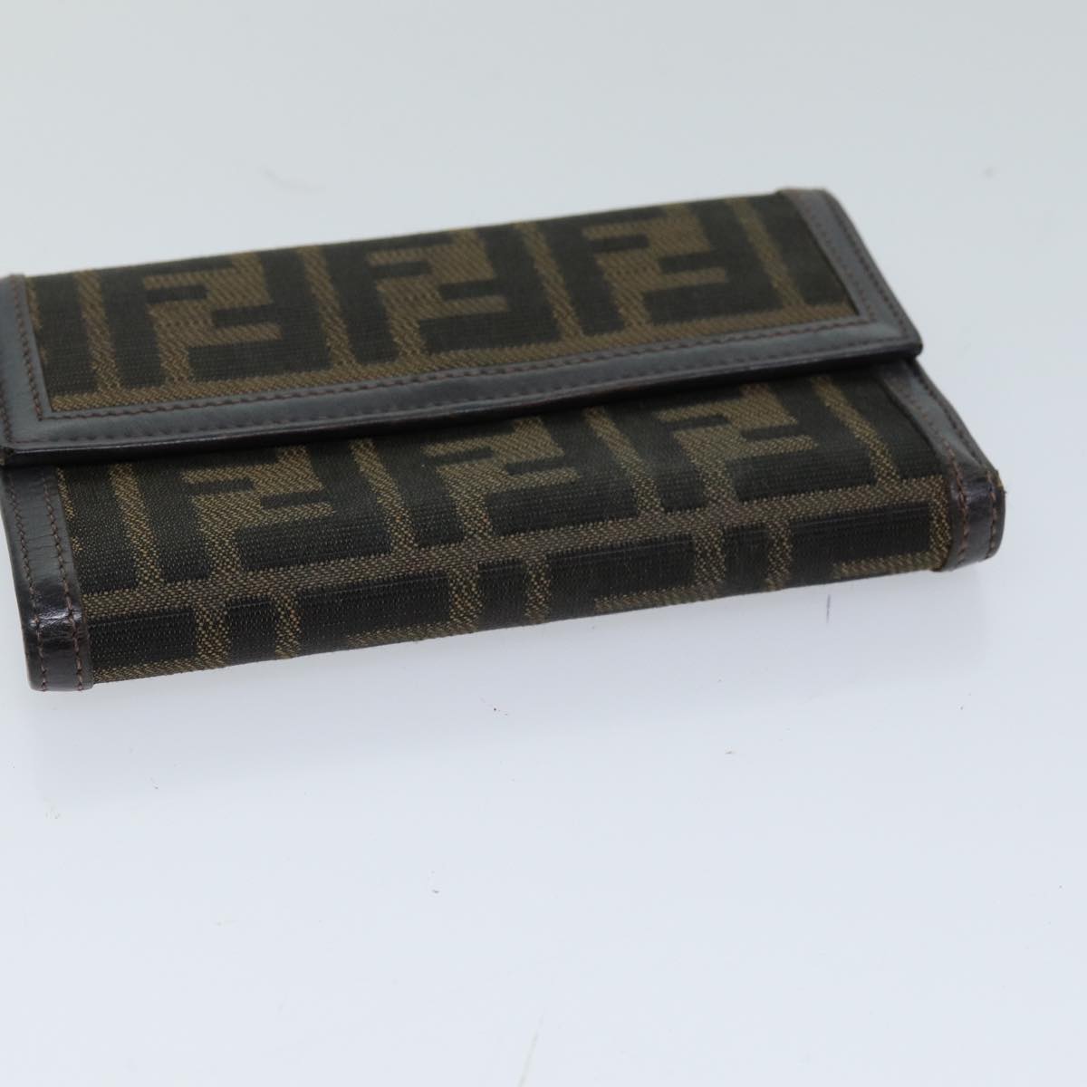 FENDI Zucca Canvas Wallet Black Brown Auth 76700