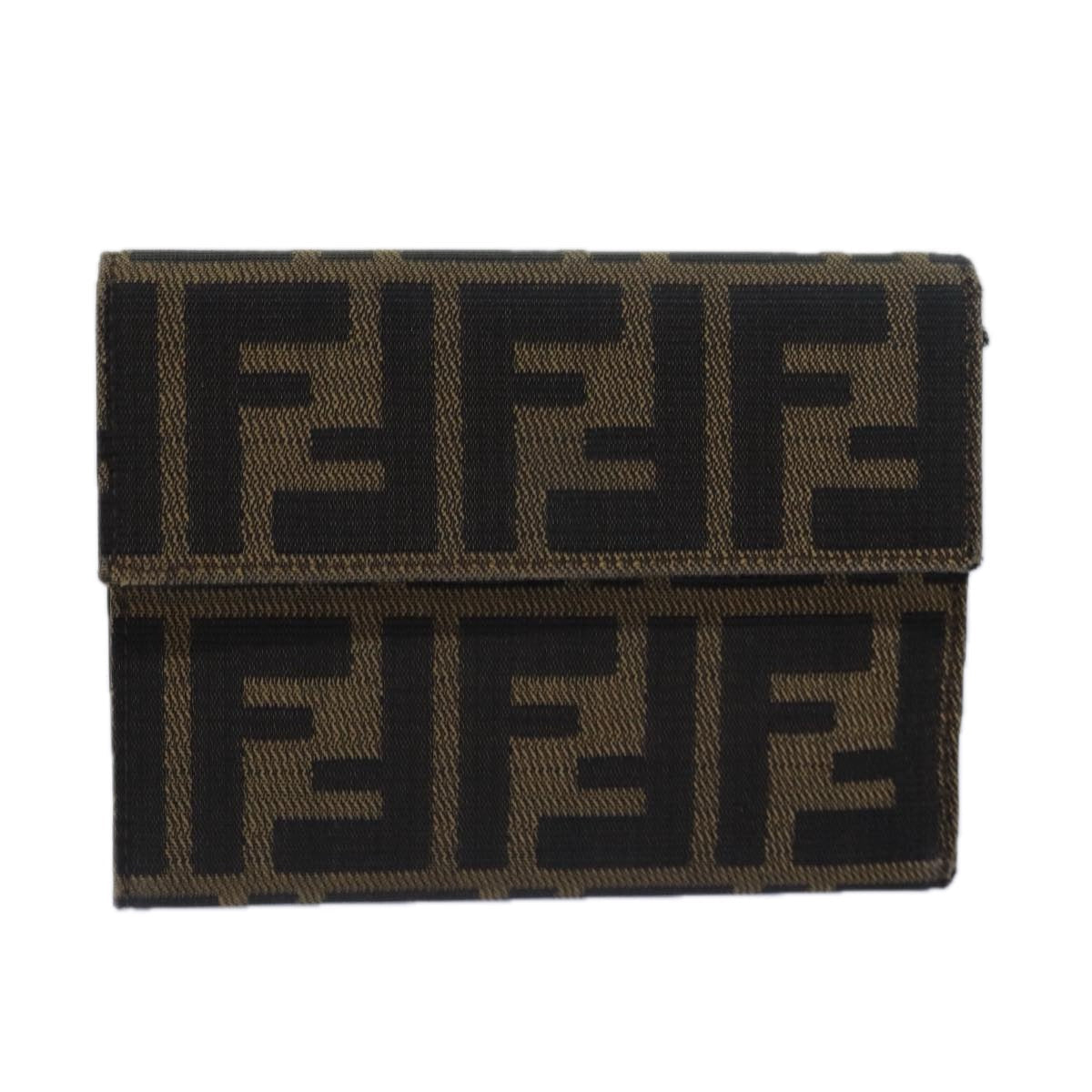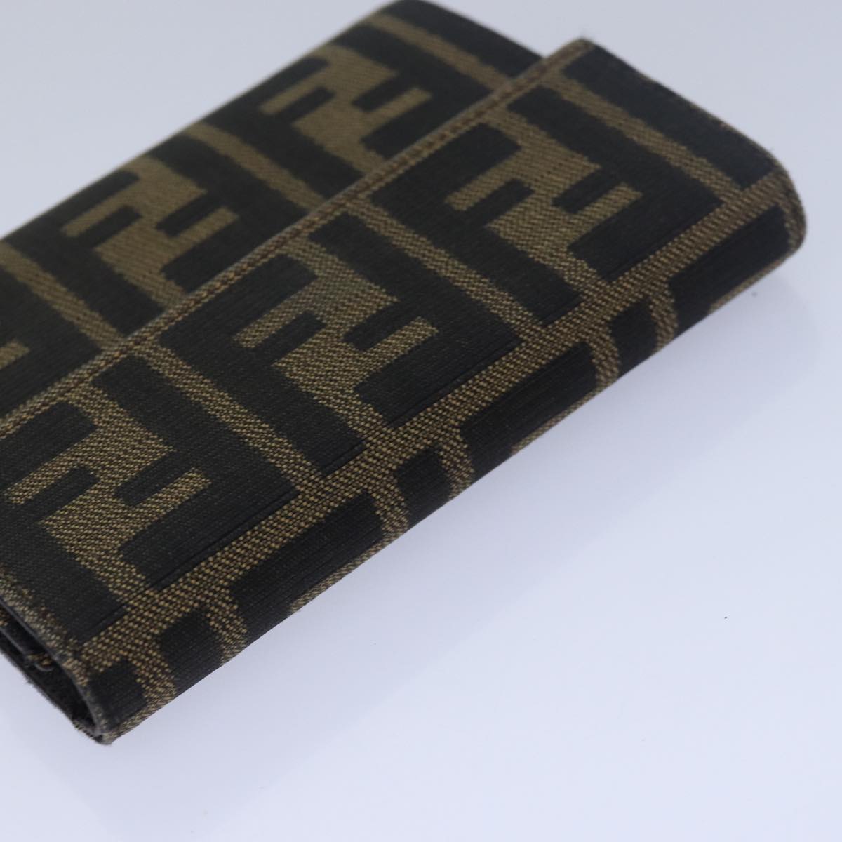 FENDI Zucca Canvas Wallet Black Brown Auth 79791