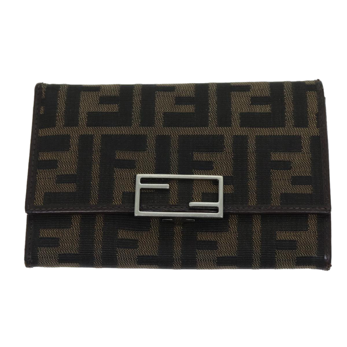 FENDI Zucca Canvas Wallet Black Brown Auth yk12033