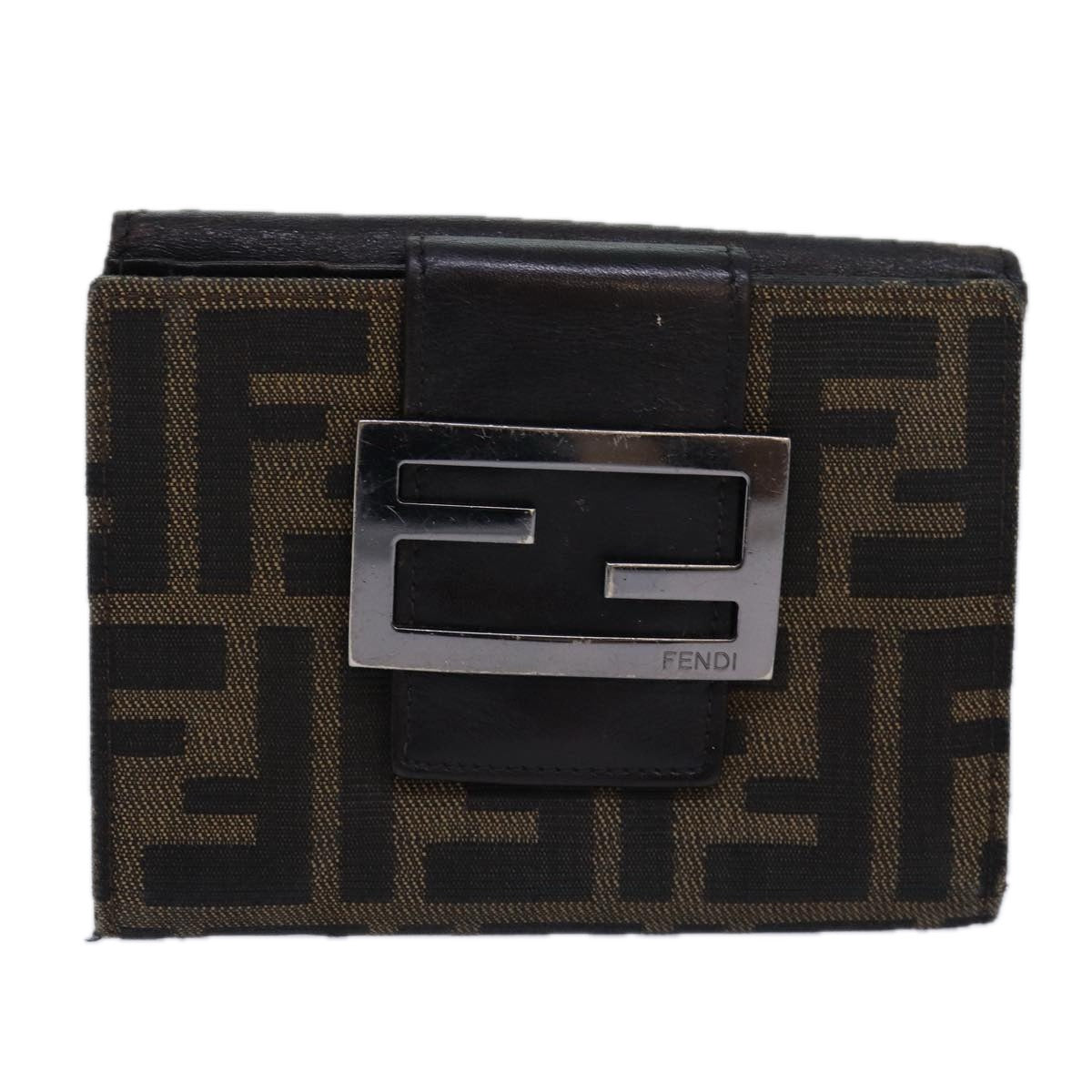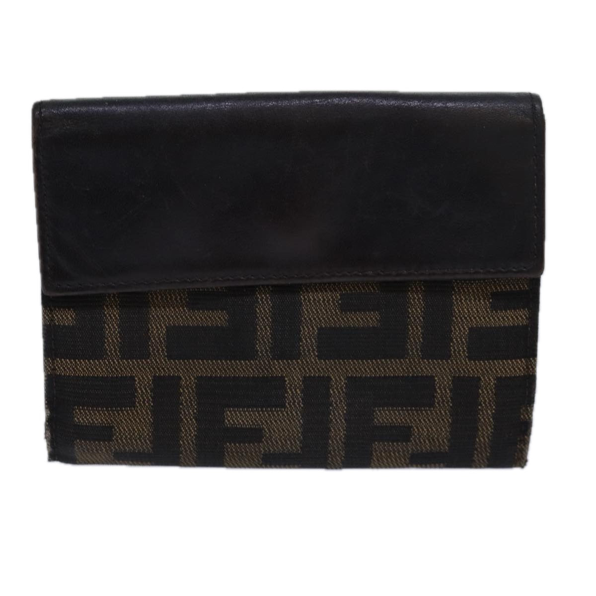 FENDI Zucca Canvas Wallet Black Brown Auth yk13745