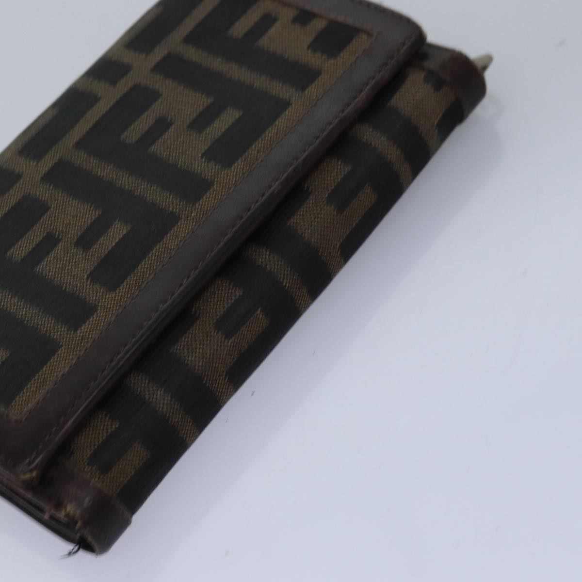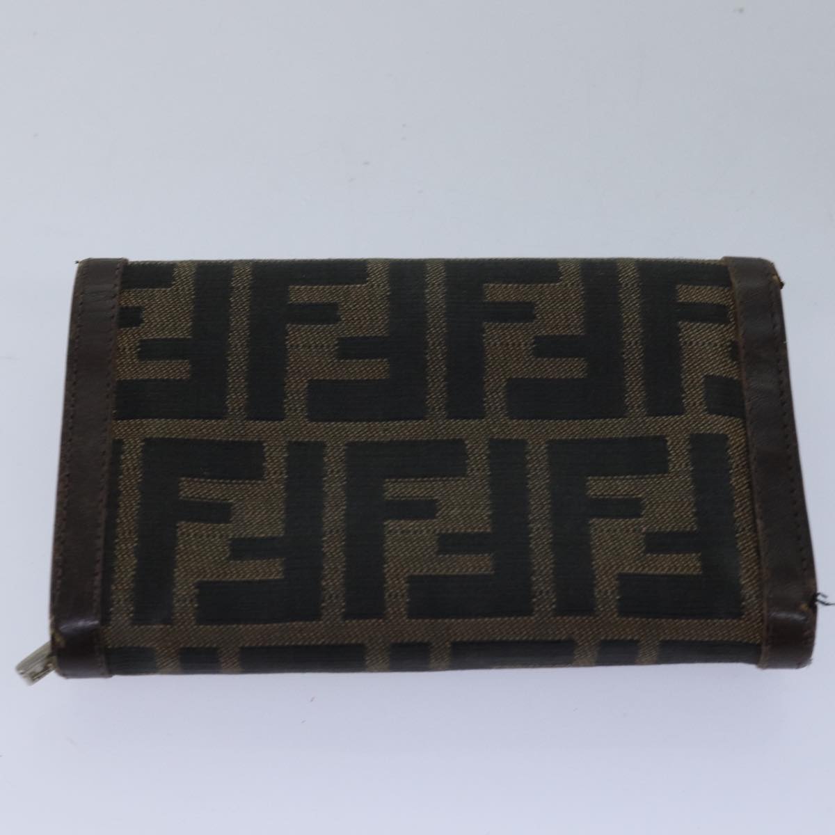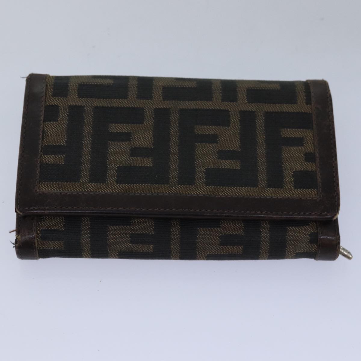 FENDI Zucca Canvas Wallet Leather 6Set Black Brown Auth fm3475