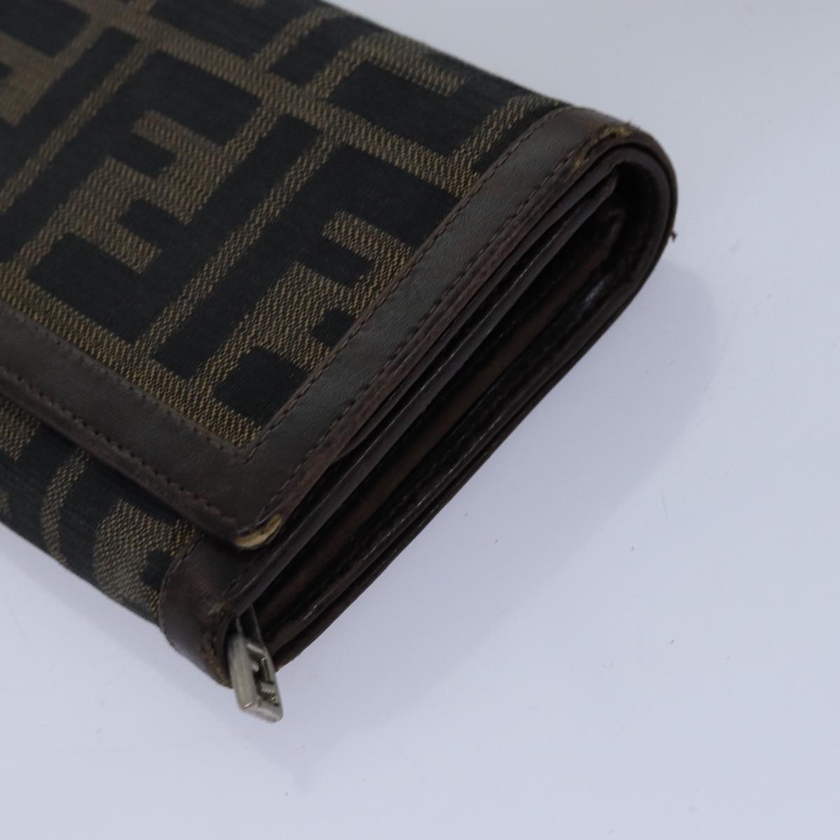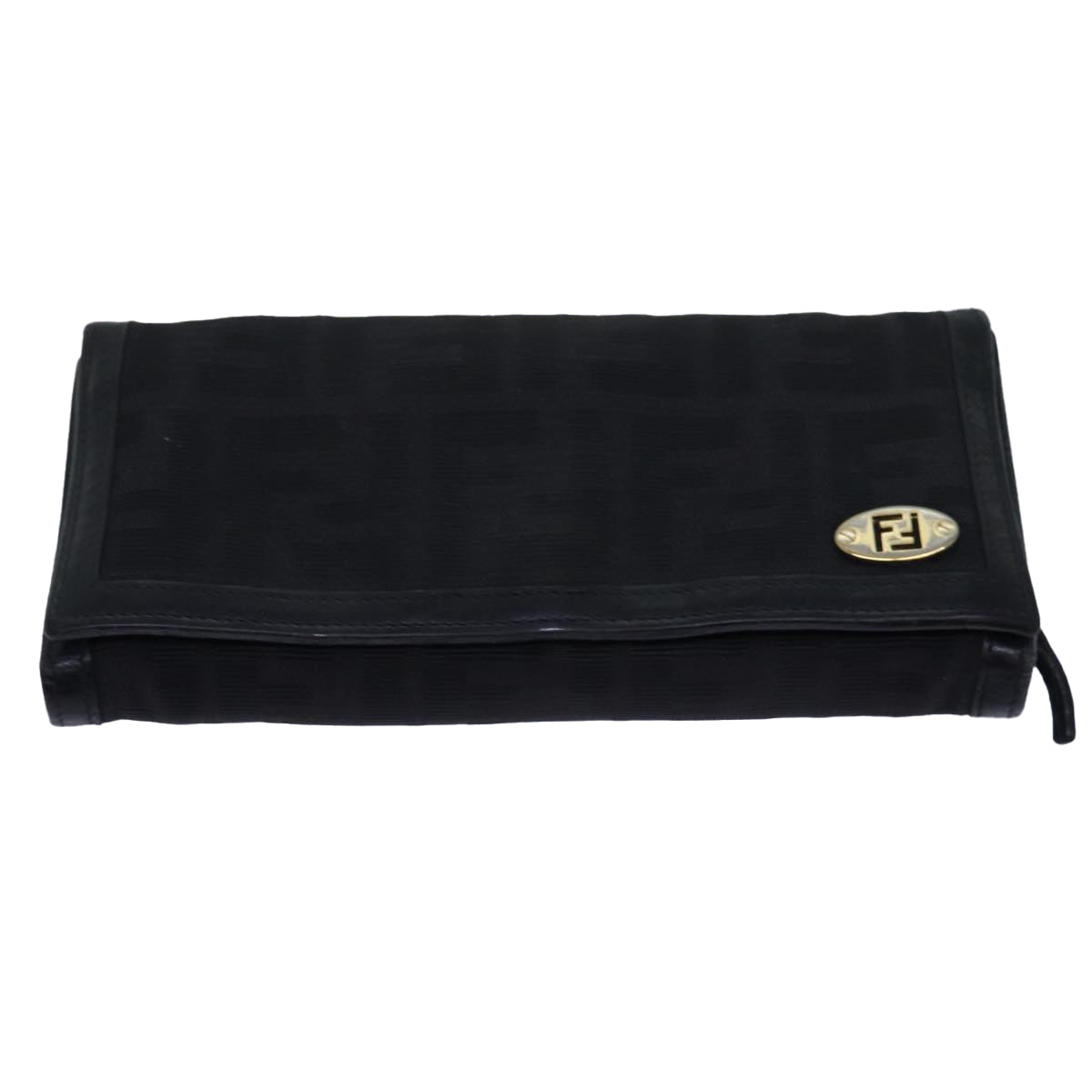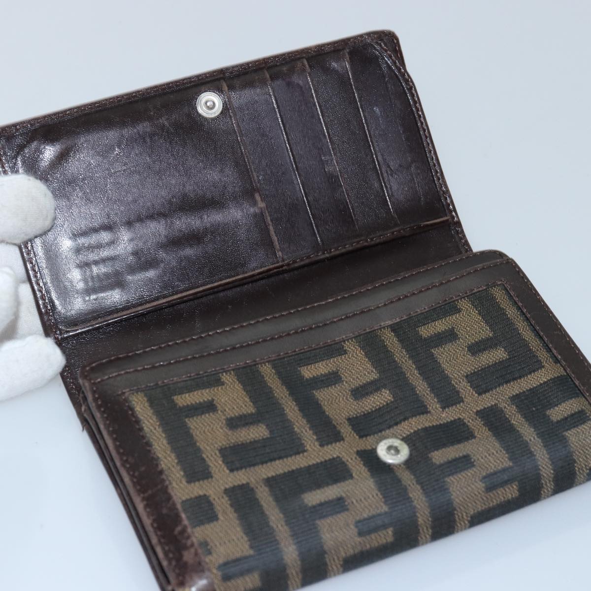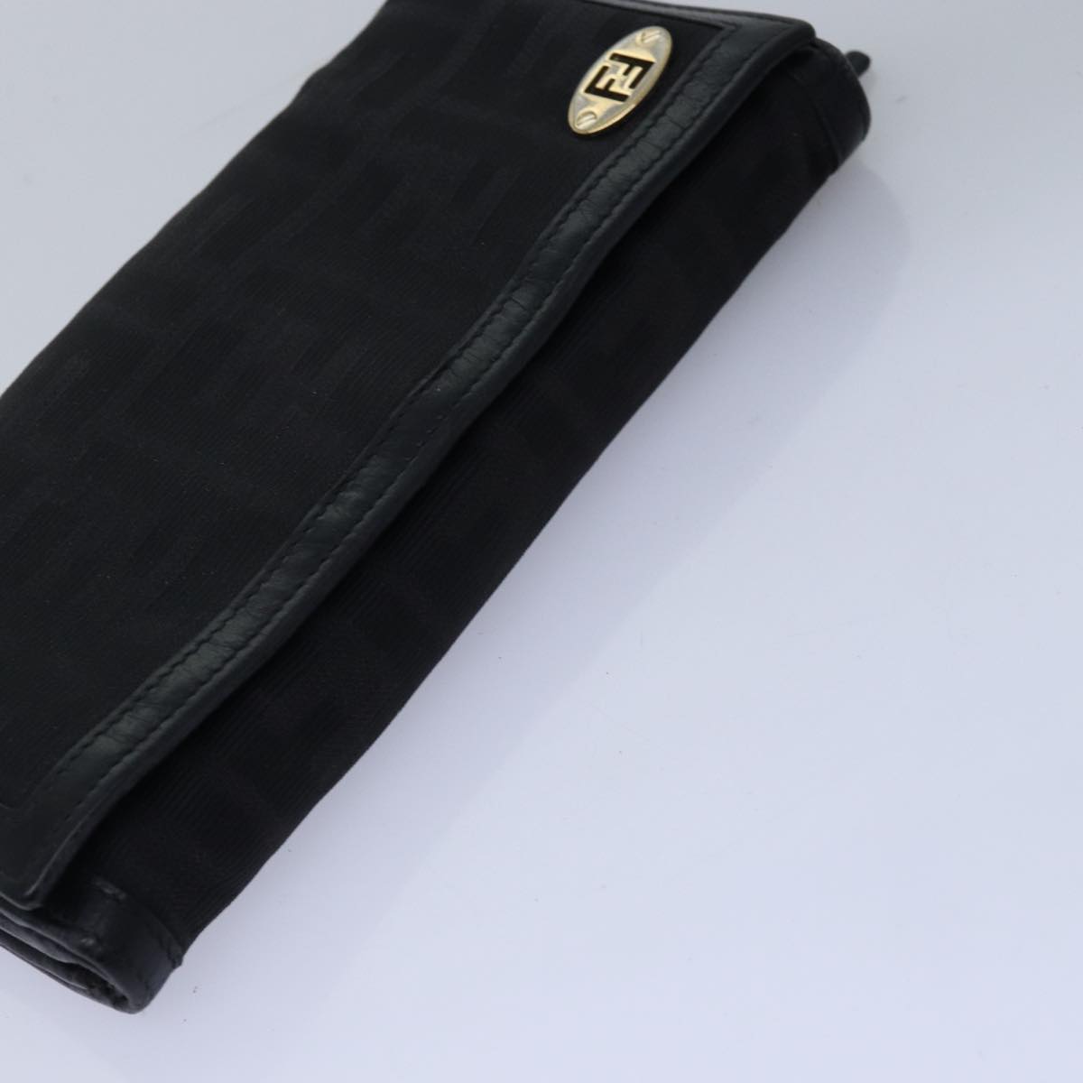 FENDI Zucca Canvas Wallet Leather 6Set Black Brown Auth fm3475