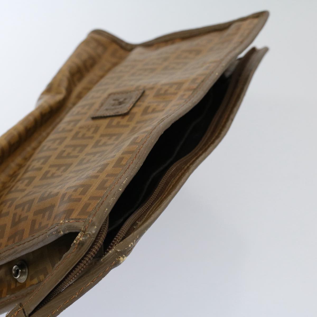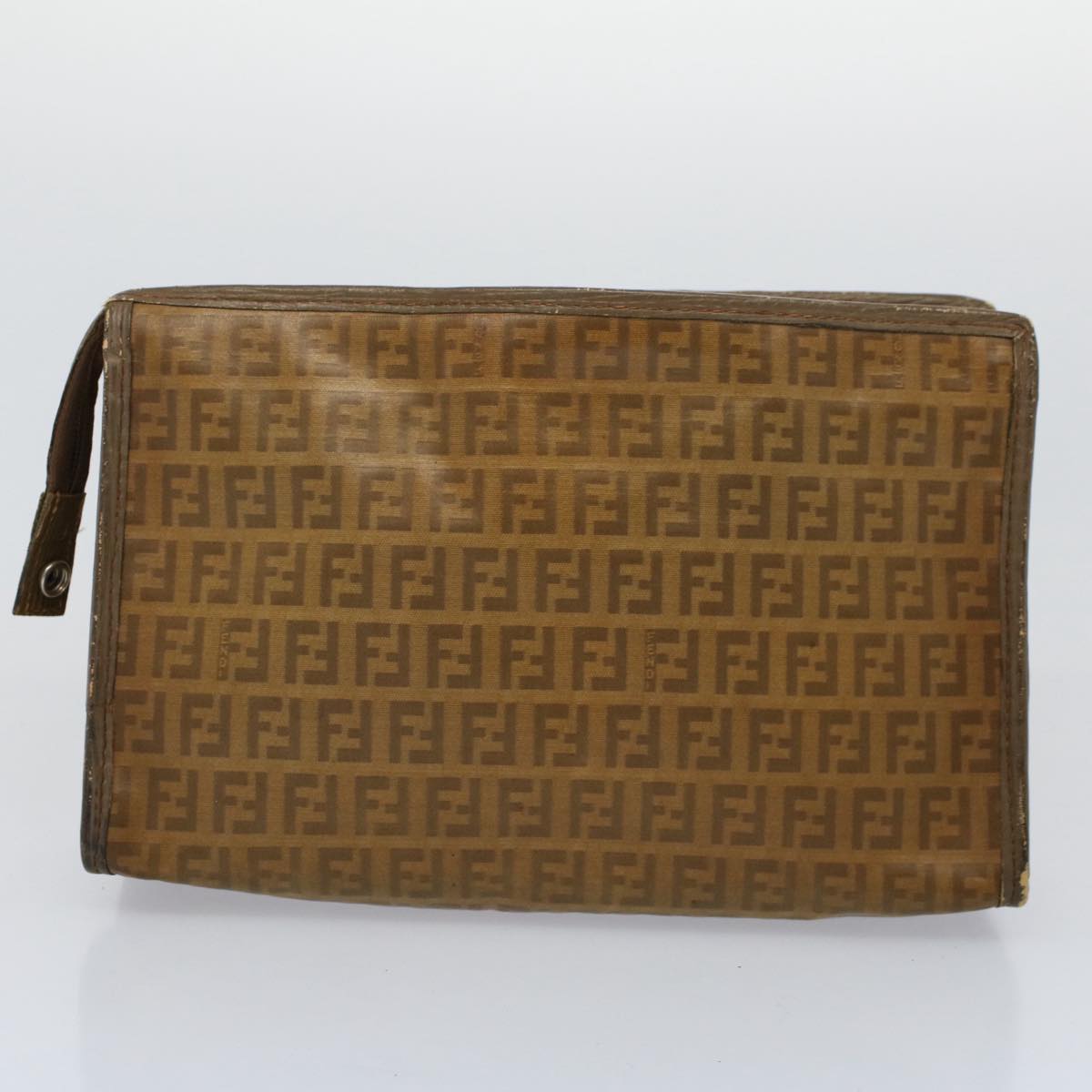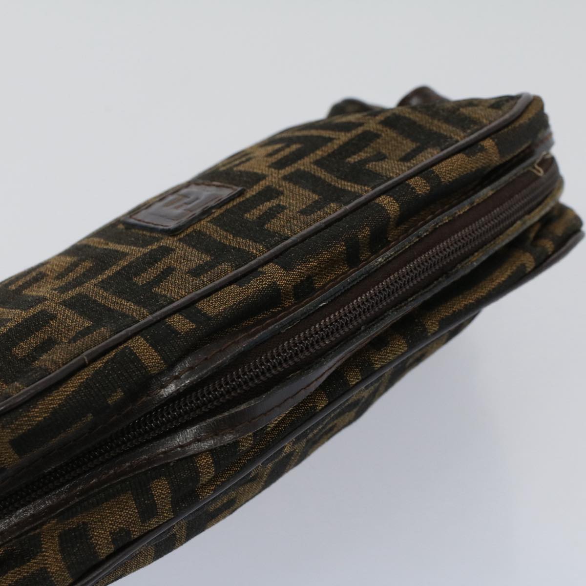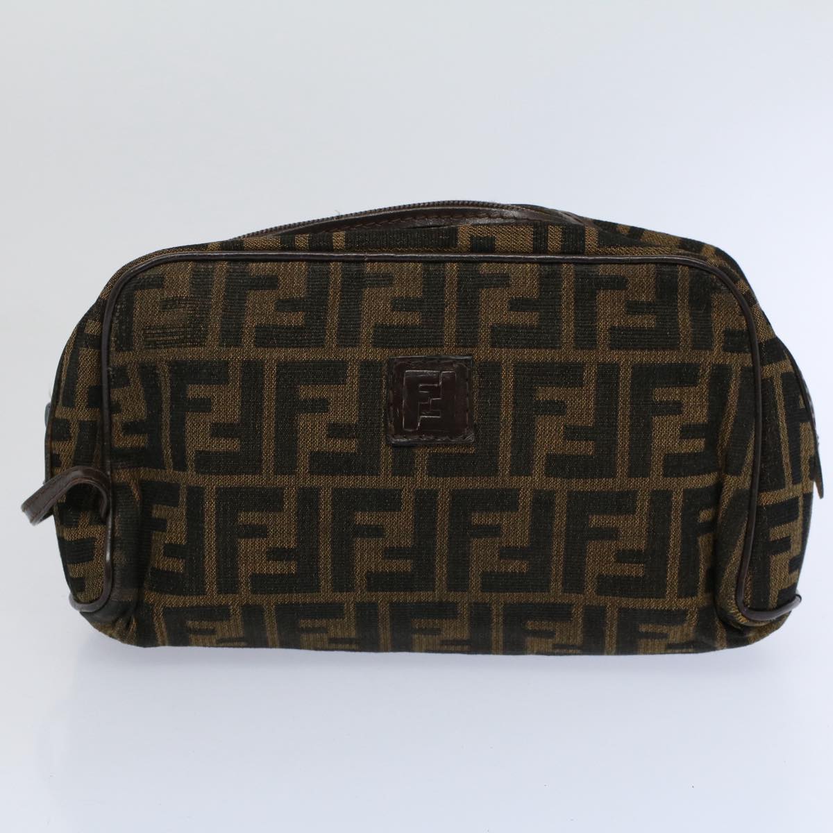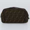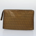 FENDI Zucca Canvas Zucchino Canvas Clutch Bag 2Set Brown Black Auth ti1353