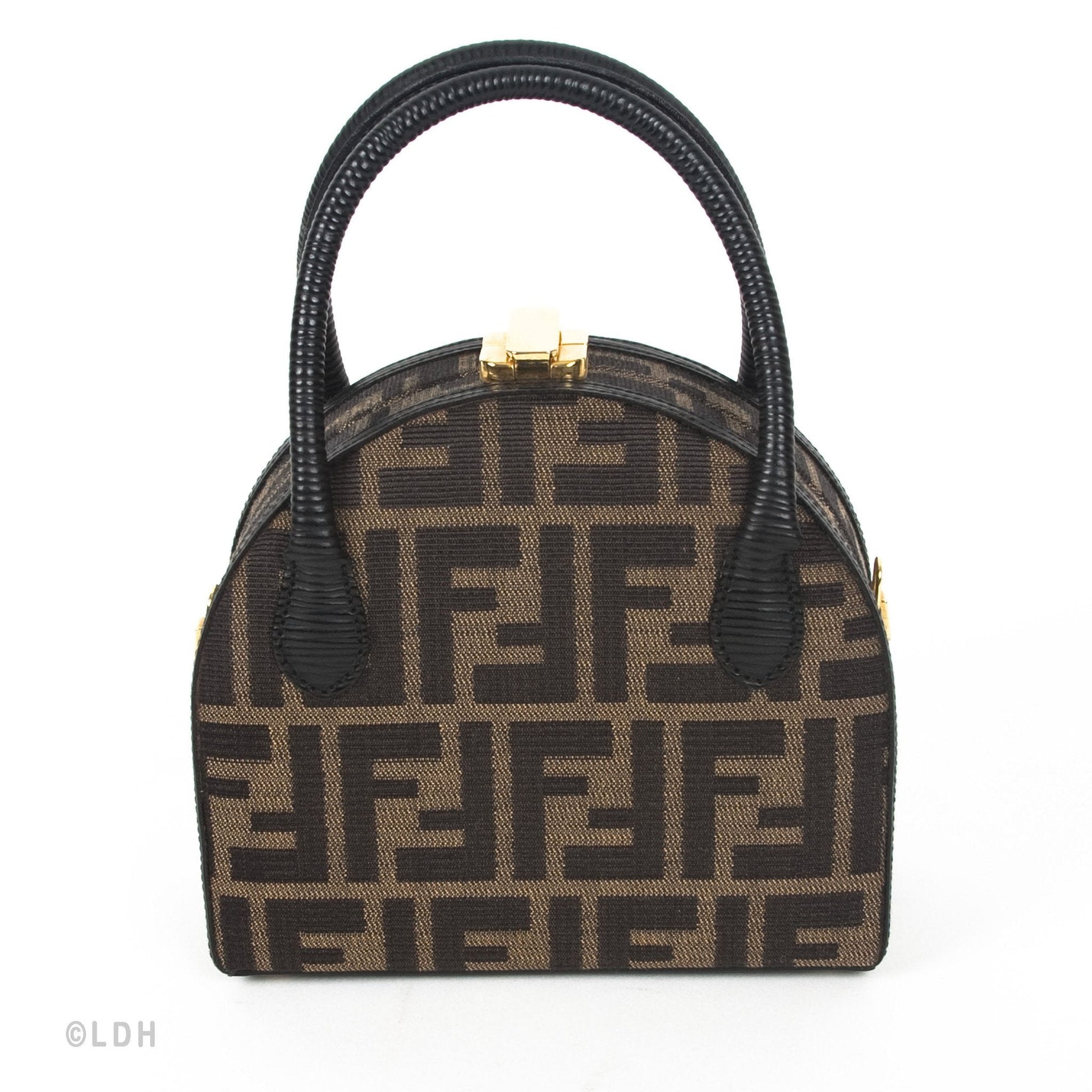 This pre owned Fendi Zucca Mini Tote features the classic FF mono exterior with brown leather trimmings. Gold tone hardware and long strap.
