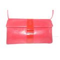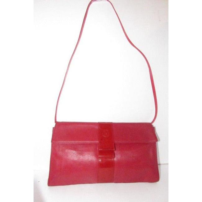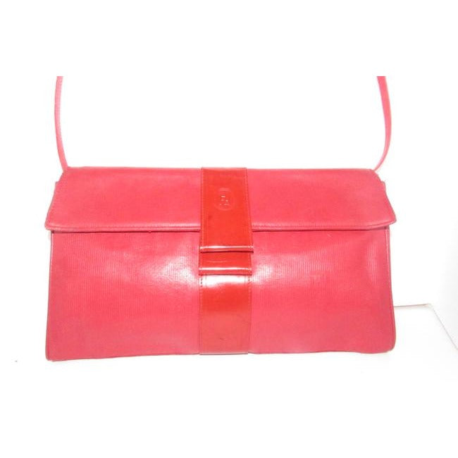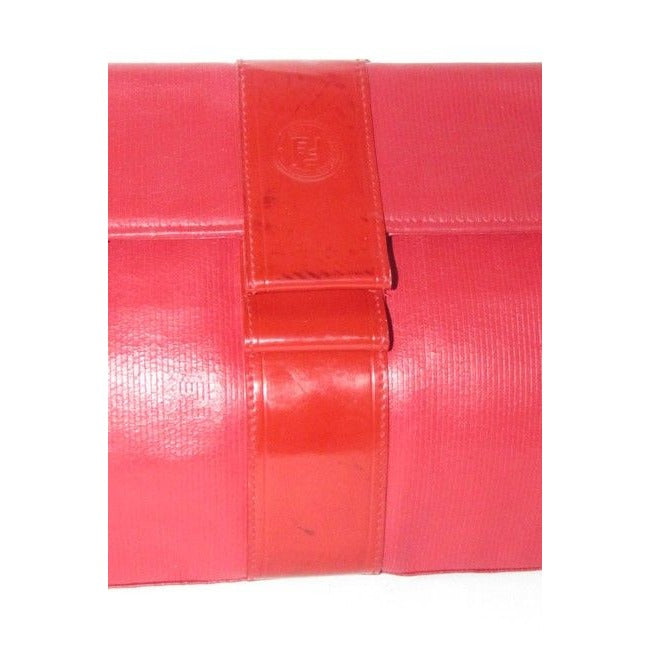 For sale is a FENDI, red leather and dark red patent leather, envelope top, two-way style- clutch or shoulder purse with an embossed linear design and FF logo print, expandable sides, removable strap, and a magnetic snap closure! This is a rare vintage style from Fendi with a modern, edgy style! It is a vintage piece that is an unusual style to find in a hard to find red color!