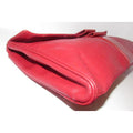 This envelope top, large, two-way style- clutch or cross body/shoulder bag by Fendi has an edgy modern look that is timeless! It is made of red leather with a darker red patent leather gathered bow like accent down the center. The leather body has an embossed linear design and FF logo print design throughout and gold hardware. The sides can expand, so the purse can hold quite a bit and it has a removable strap. This purse is stunning and very unique!