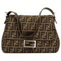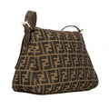 This , pre owned Fendi Zucca Shoulder Bag. It features the classic Fendi mono zucca canvas exterior with a leather top handle, brown leather trimmings, a zipper pocket, and a flap closure. A perfect find for the Fendi lover in you. This super cute Fendi brown zucca canvas shoulder bag makes a perfect everyday bag. It is a timeless and durable piece and will hold your necessities in style while complementing any outfit. Made in Italy.