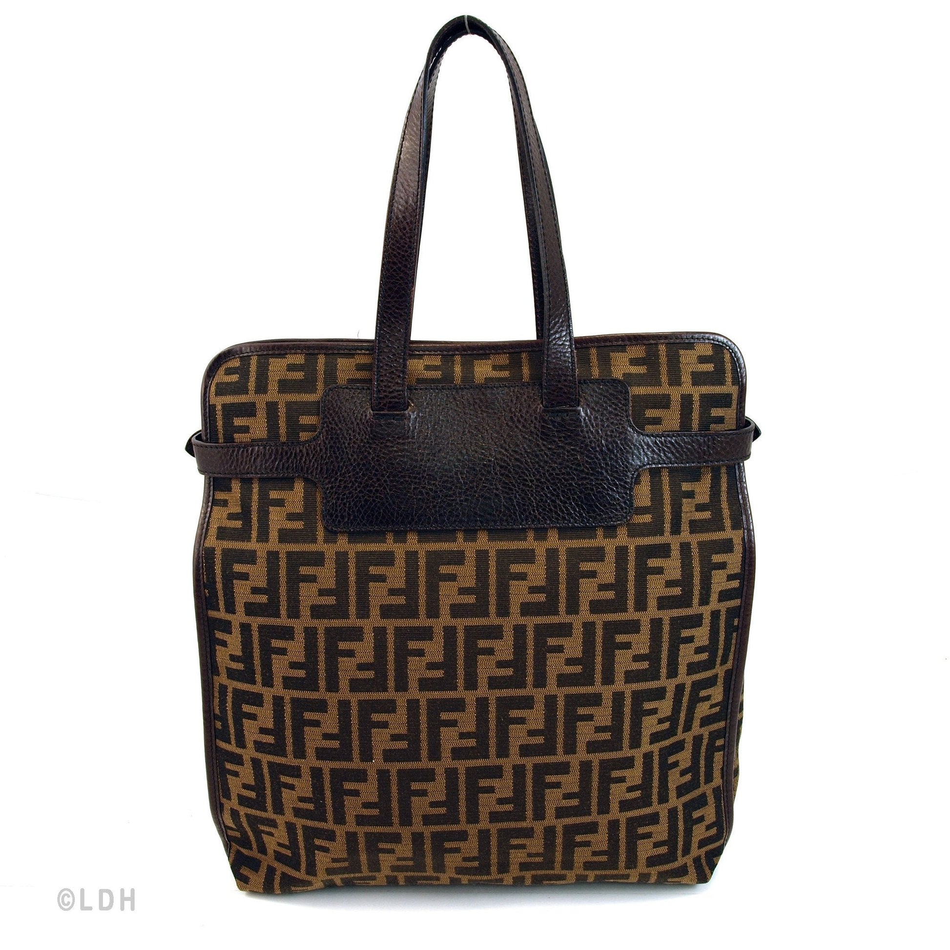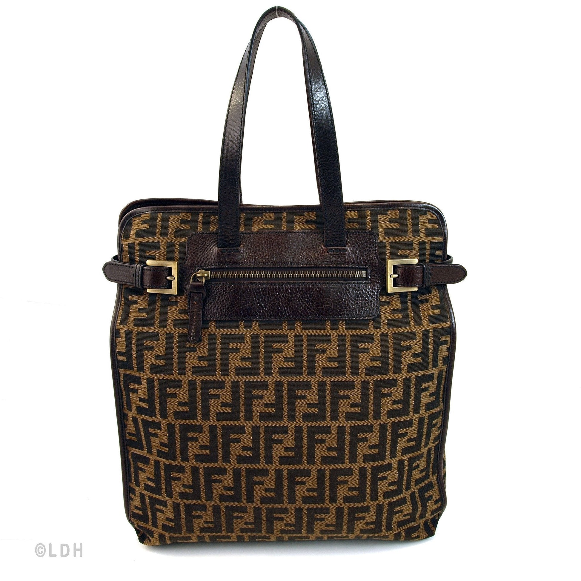 This pre owned Fendi Zucca Tote features the classic FF monogram exterior with brown leather trimmings and inside zip pocket. Perfect Fendi to tote around all day long.: Pre Owned
