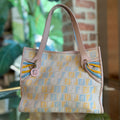 Condition Grade: This exquisite tote bag features the iconic Zucchino pattern in a soft pastel Cipria color, its compact size and spacious interior with sturdy handles offer both style and functionality. B- Good Overall Condition