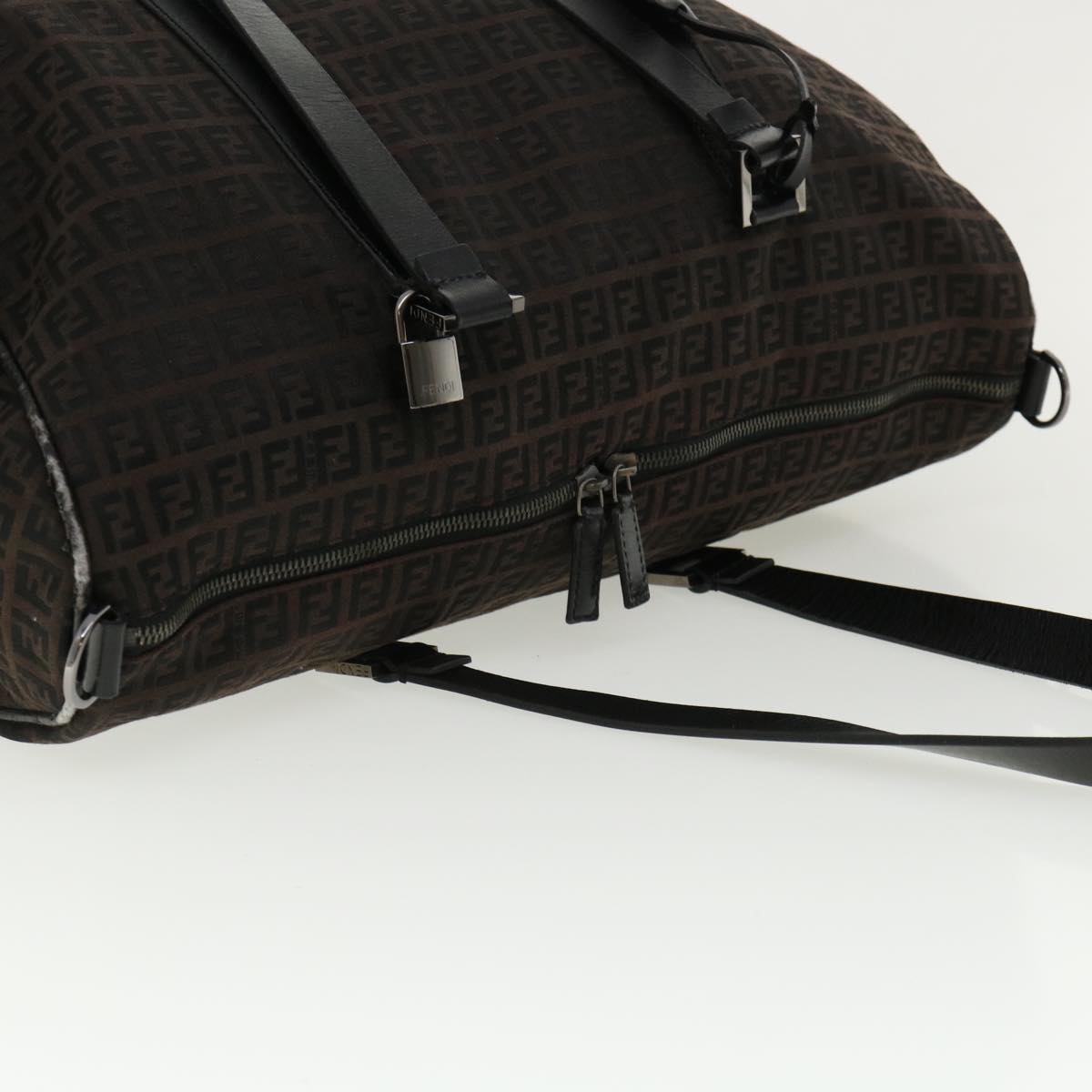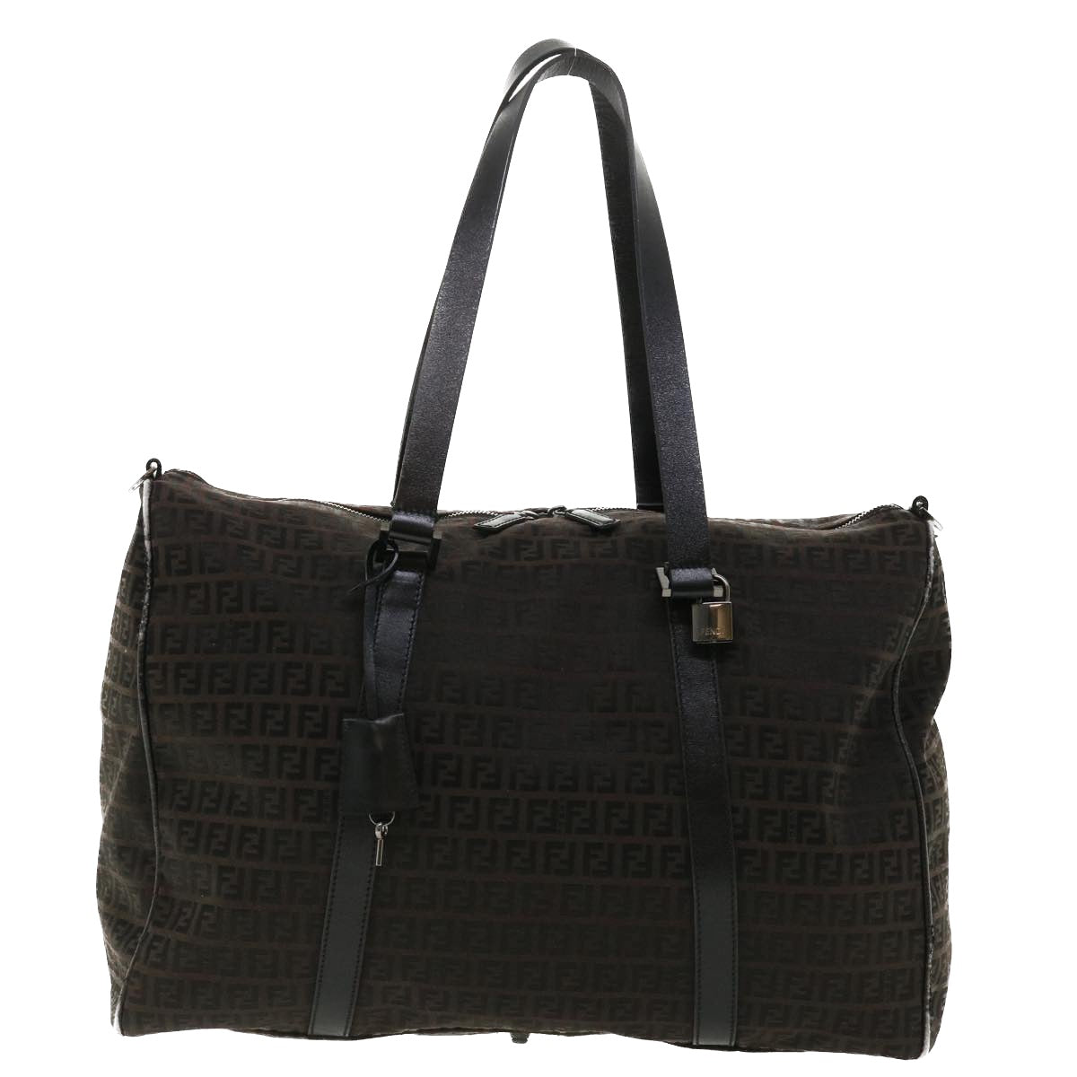 FENDI Zucchino Canvas Boston Bag Black Auth am3471