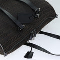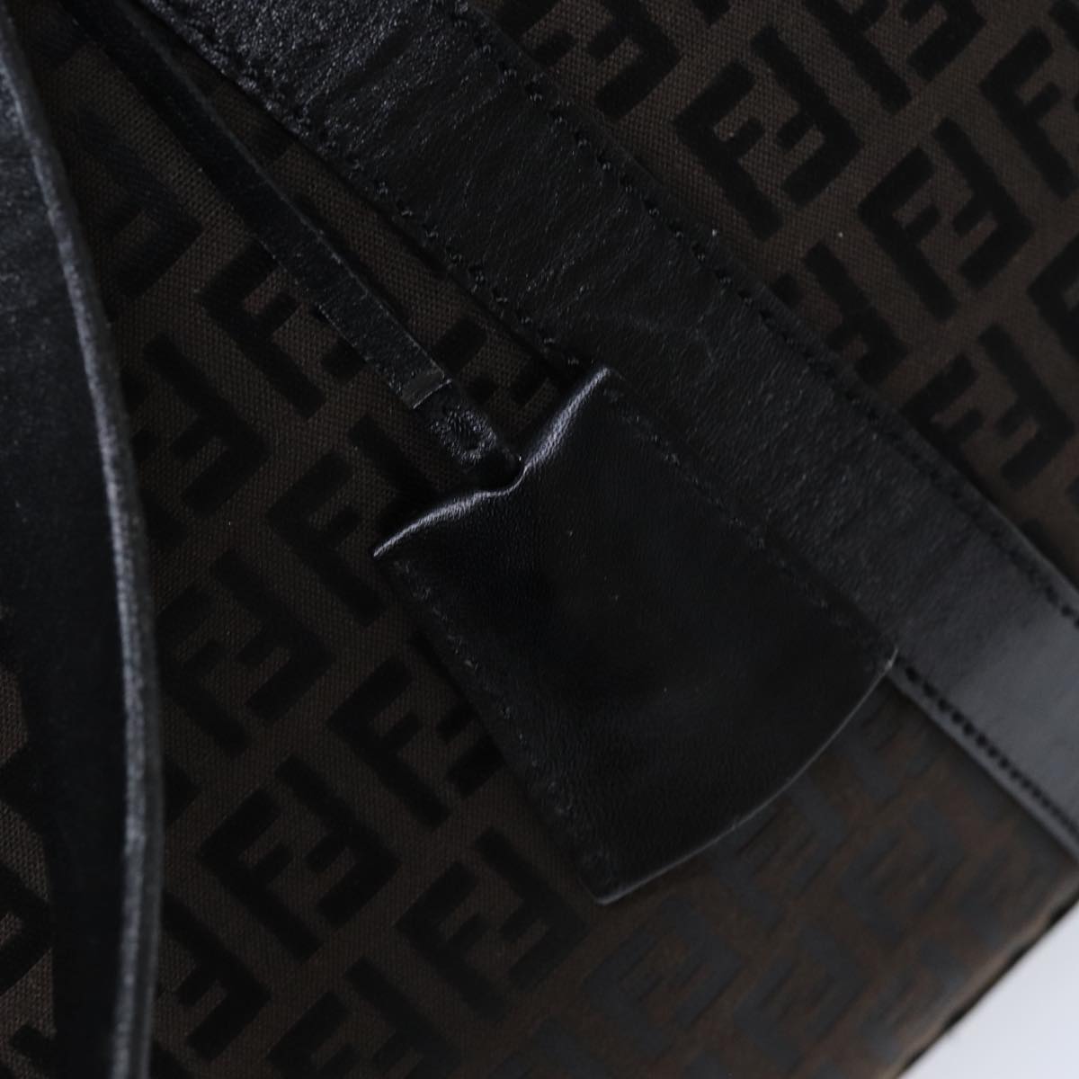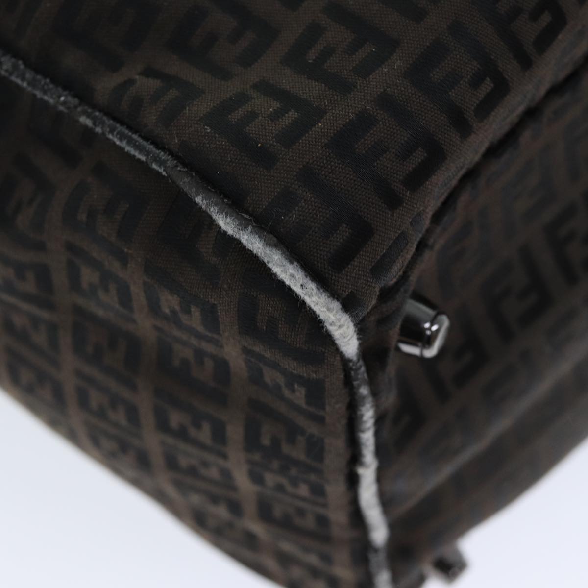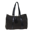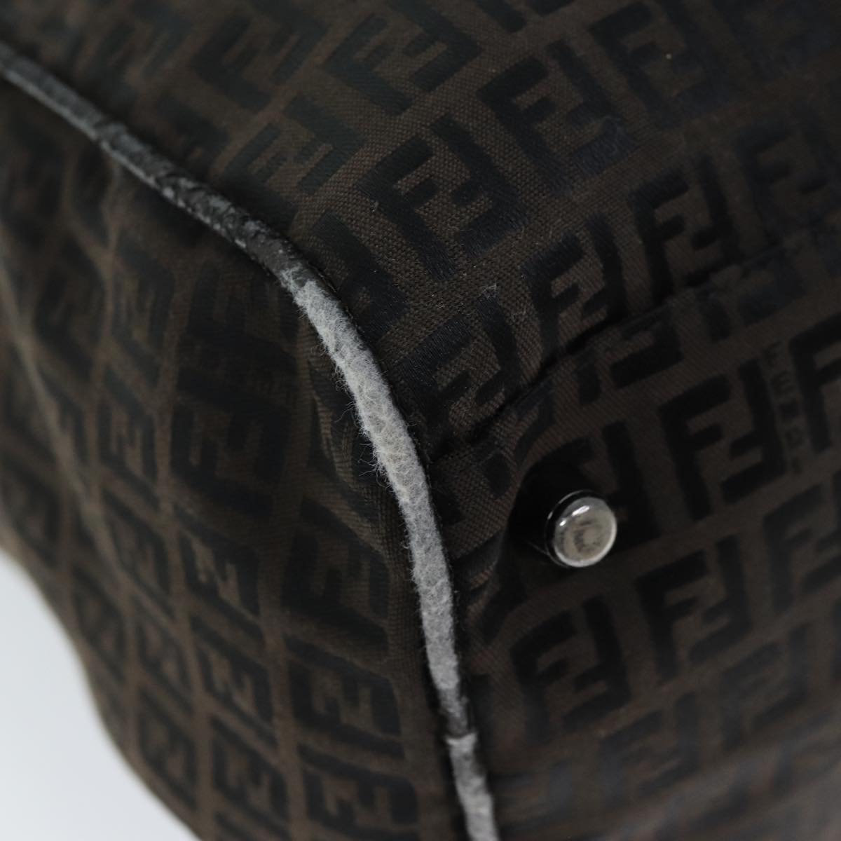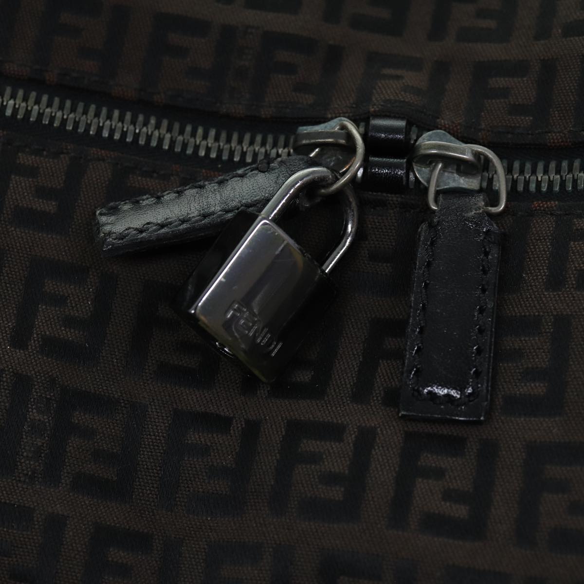 FENDI Zucchino Canvas Boston Bag Brown Black Auth bs14074