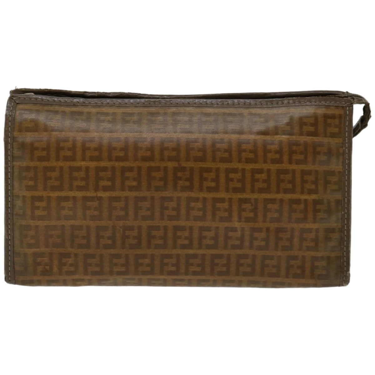 FENDI Zucchino Canvas Clutch Bag Brown Auth im455